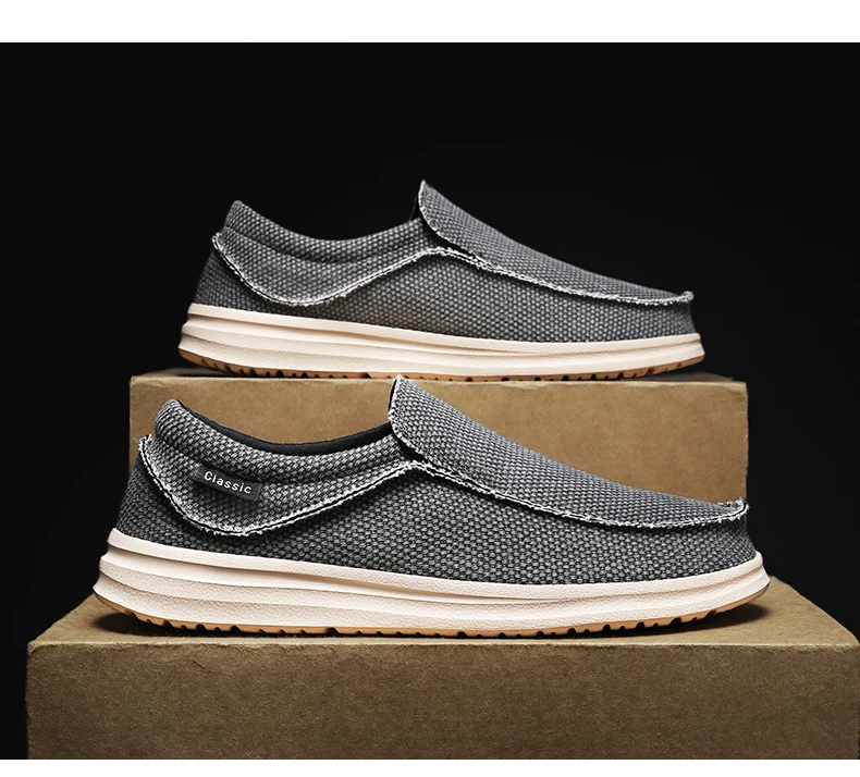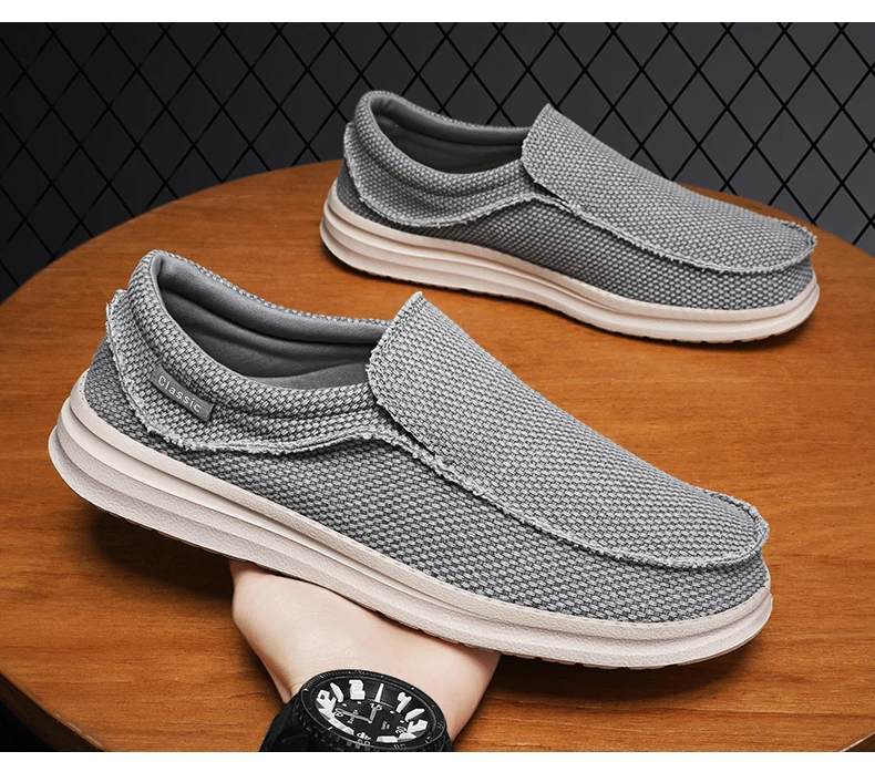 Spring Summer Men Casual Canvas Shoes Breathable Lazy Shoe Soft Sole Vulcanized Shoe Outdoor Sneakers Walking Shoe Driving Shoes