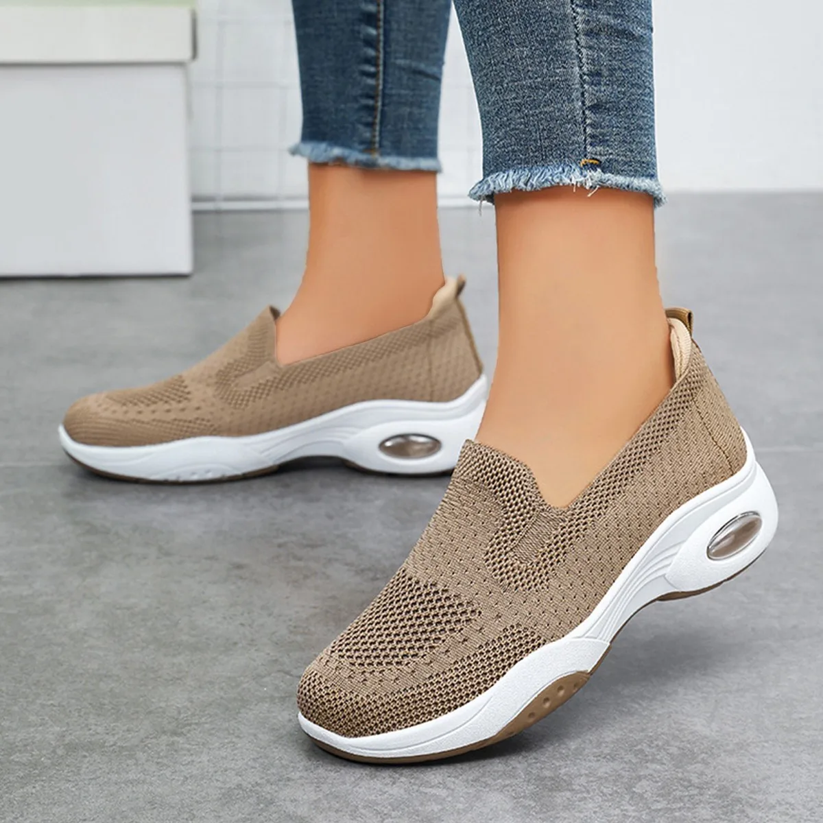 Spring Women Casual Flat Breathable Knitted Sneakers Autumn Sports Tennis Shoes Woman Fashion Slip On Soft Bottom Walking Shoe