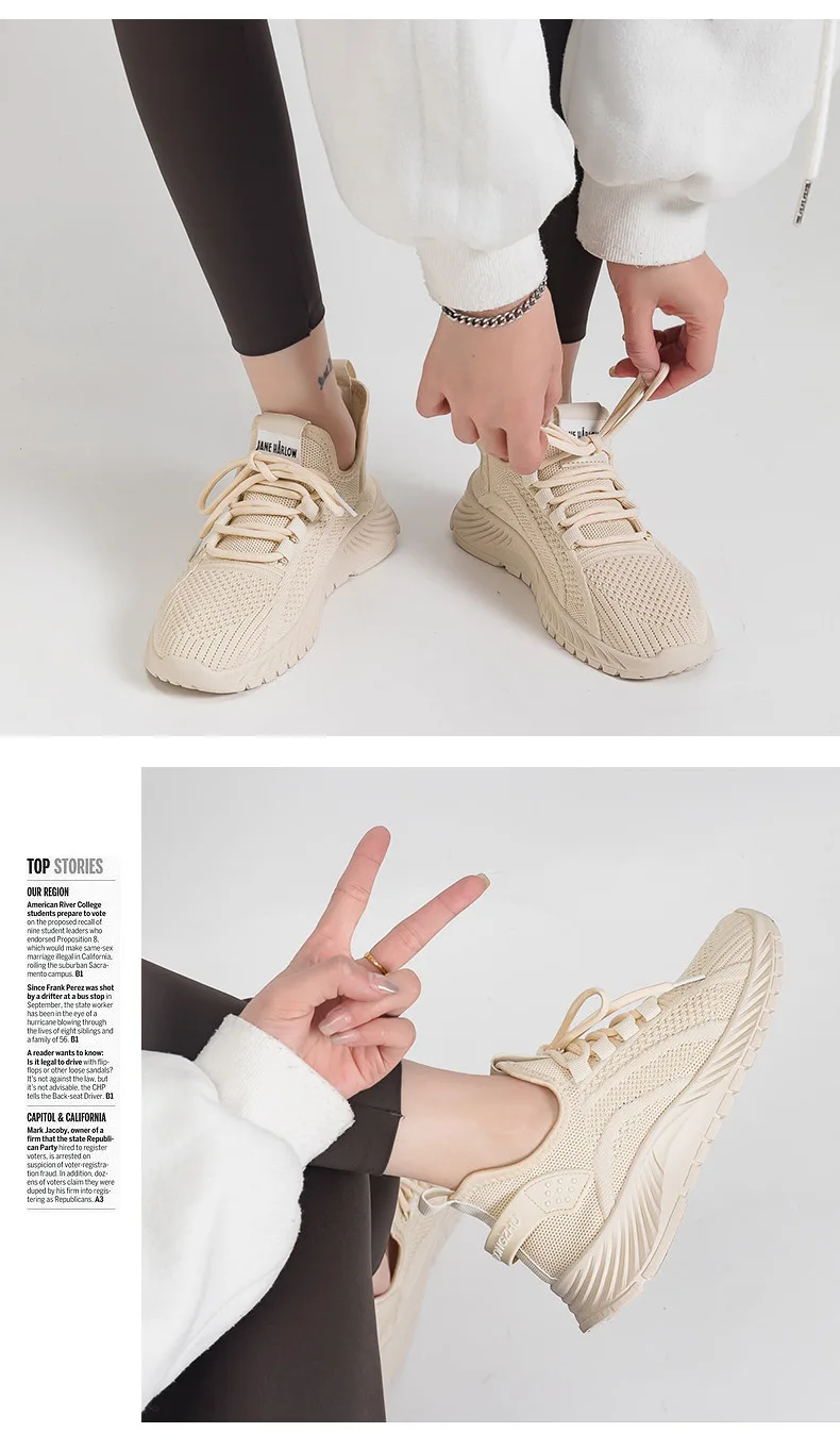Spring Women Fly Weave Mesh Breathable Sneakers 2023 New Flat Casual All-match White Sport Shoes Female Outdoor Running Shoes
