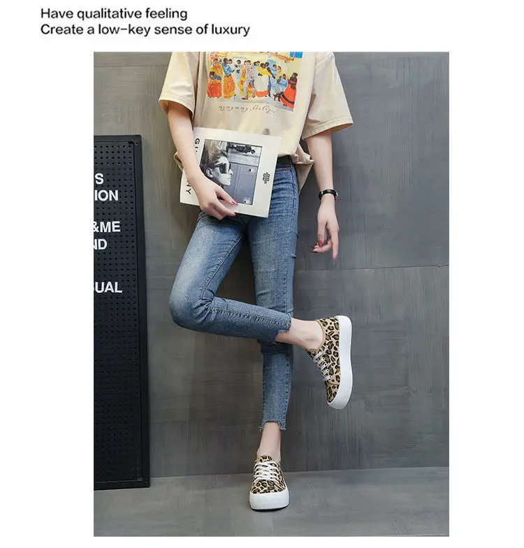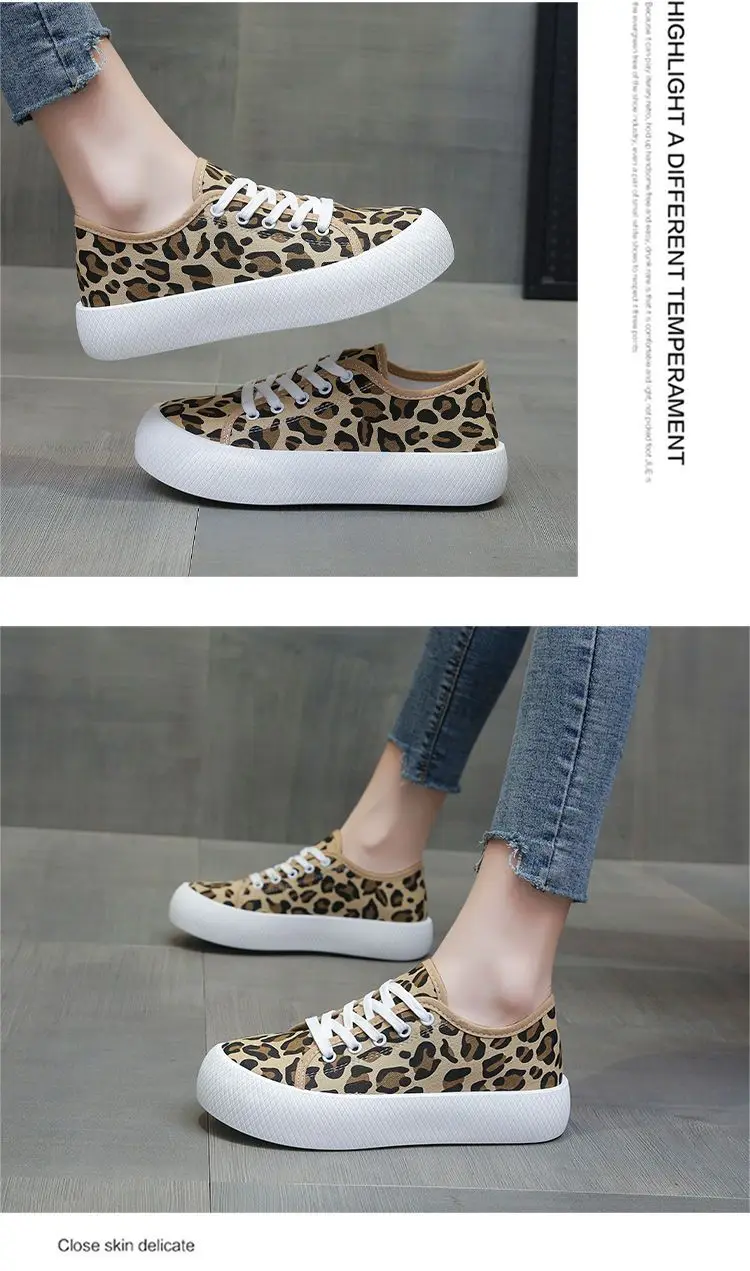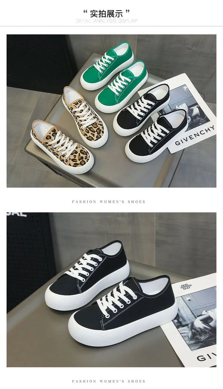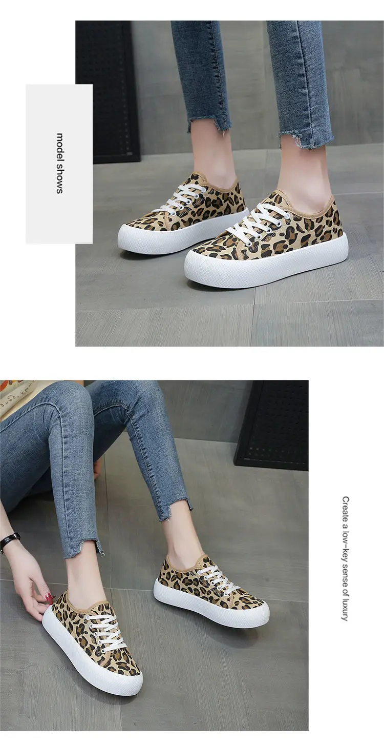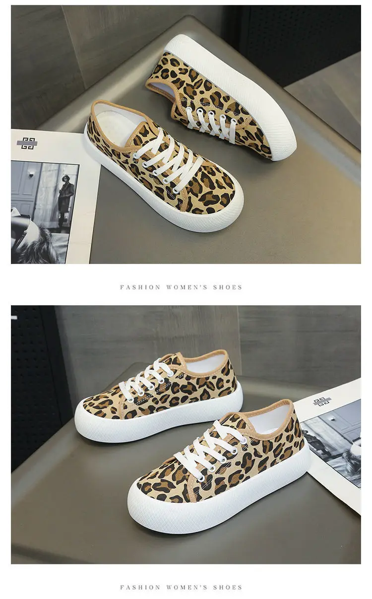 Stylish Leopard Print Sneakers Women Spring Chunky Canvas Shoes Teen Woman Vulcanized Sneaker Tennis Platform Shoes Plimsolls