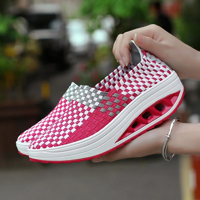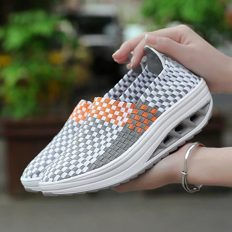 Summer Fashion Sneakers Women Shoes Wedges Increased Thick Platform Shoes Woman Woven Breathable Casual Sneakers Shake Shoe