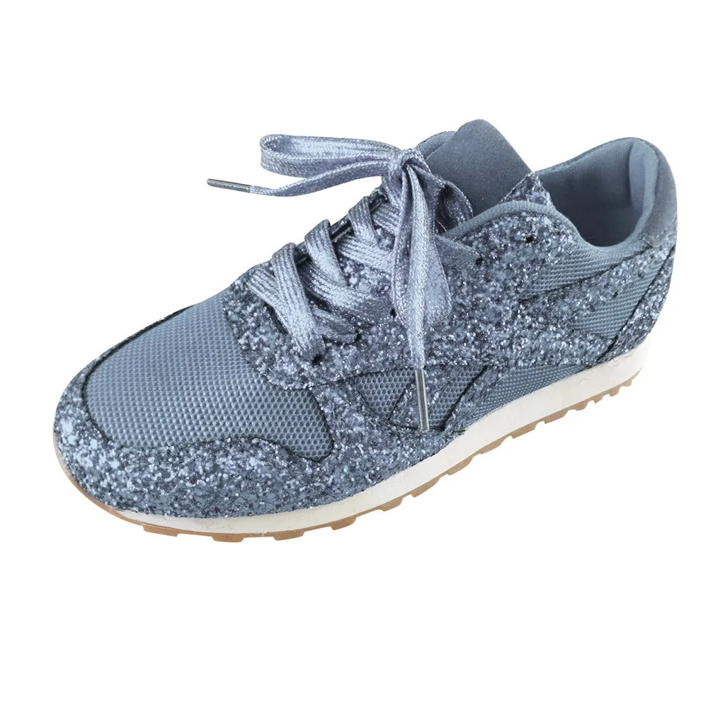 Summer Women Casual Glitter Shoes Mesh Flat Shoes Ladies Sequin Vulcanized Shoes Lace Up Sneakers Outdoor Sport Running Shoes