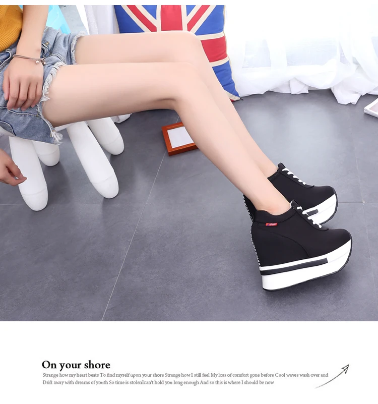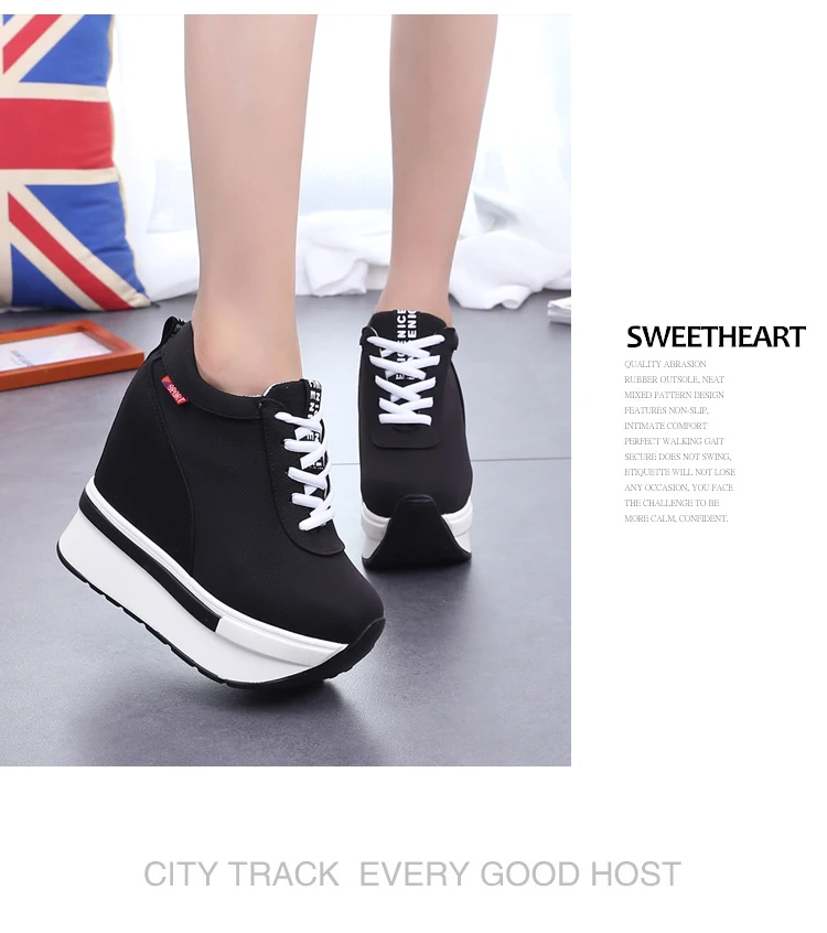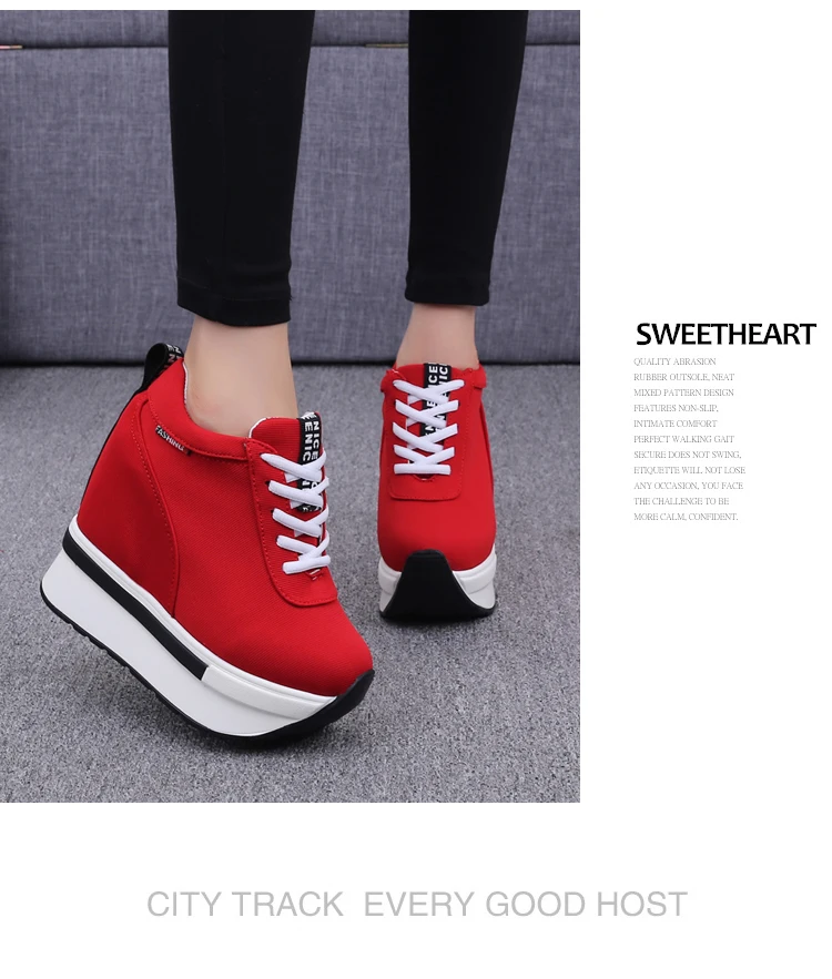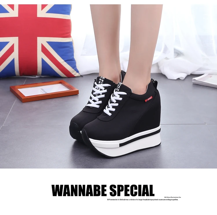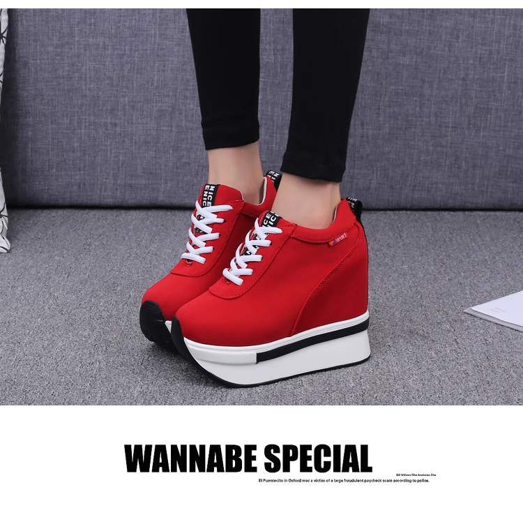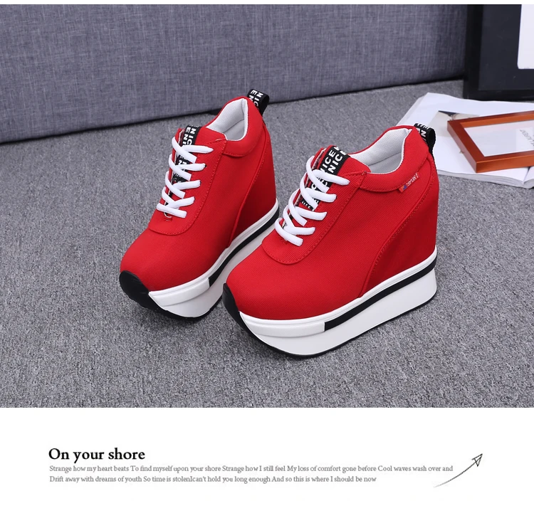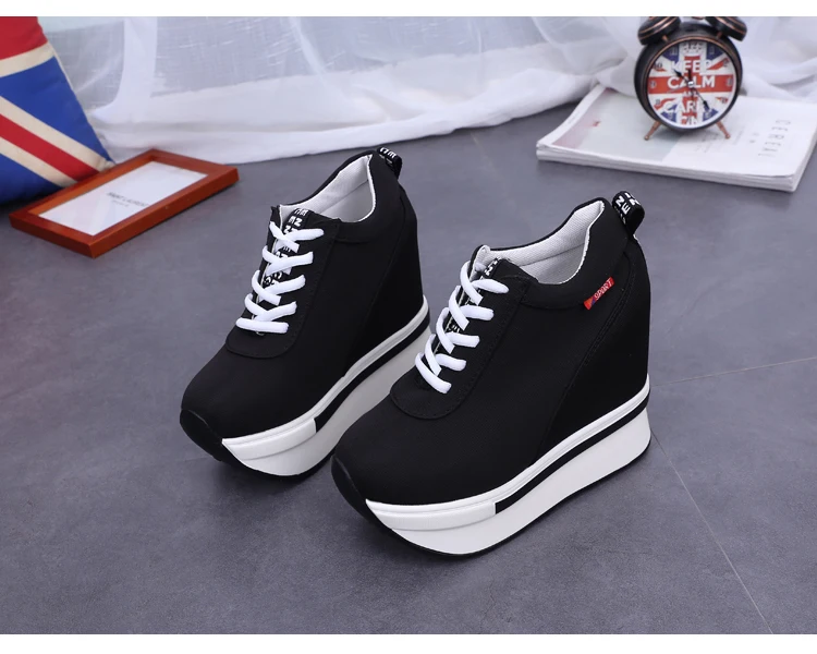 Summer Women Sneakers Fashion Height Increasing Breathable Lace-Up Wedges Sneakers Platform Shoes Canvas Woman Casual Shoes 11cm