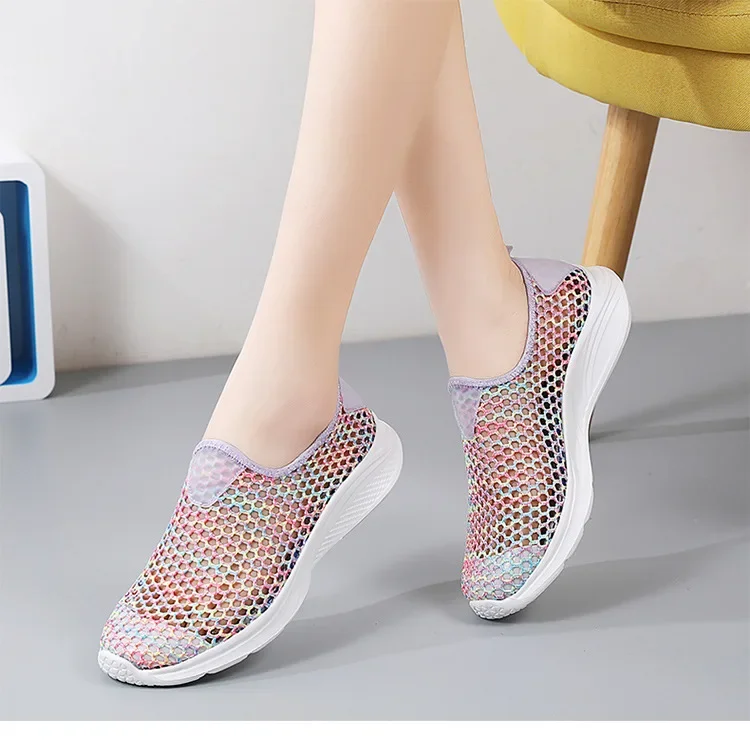 Summer women's hollow mesh breathable, lightweight, comfortable sports and leisure old Beijing cloth shoes