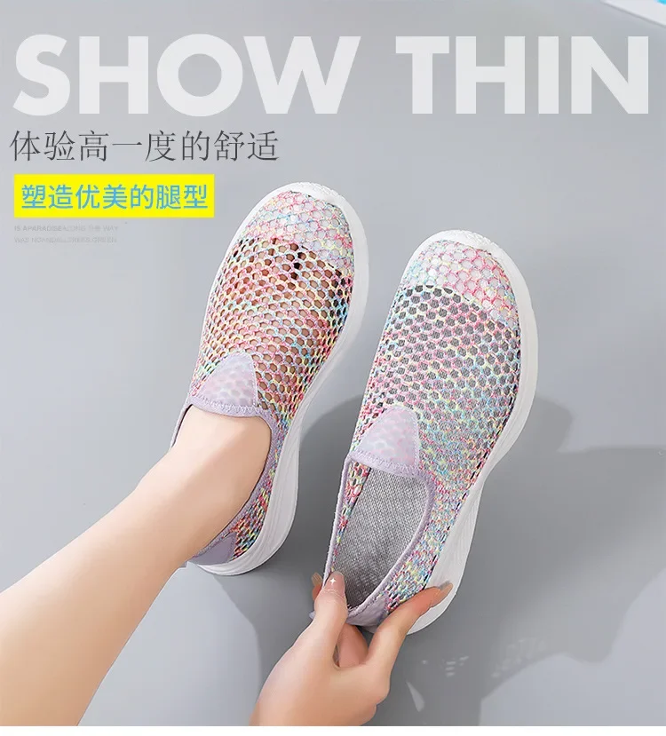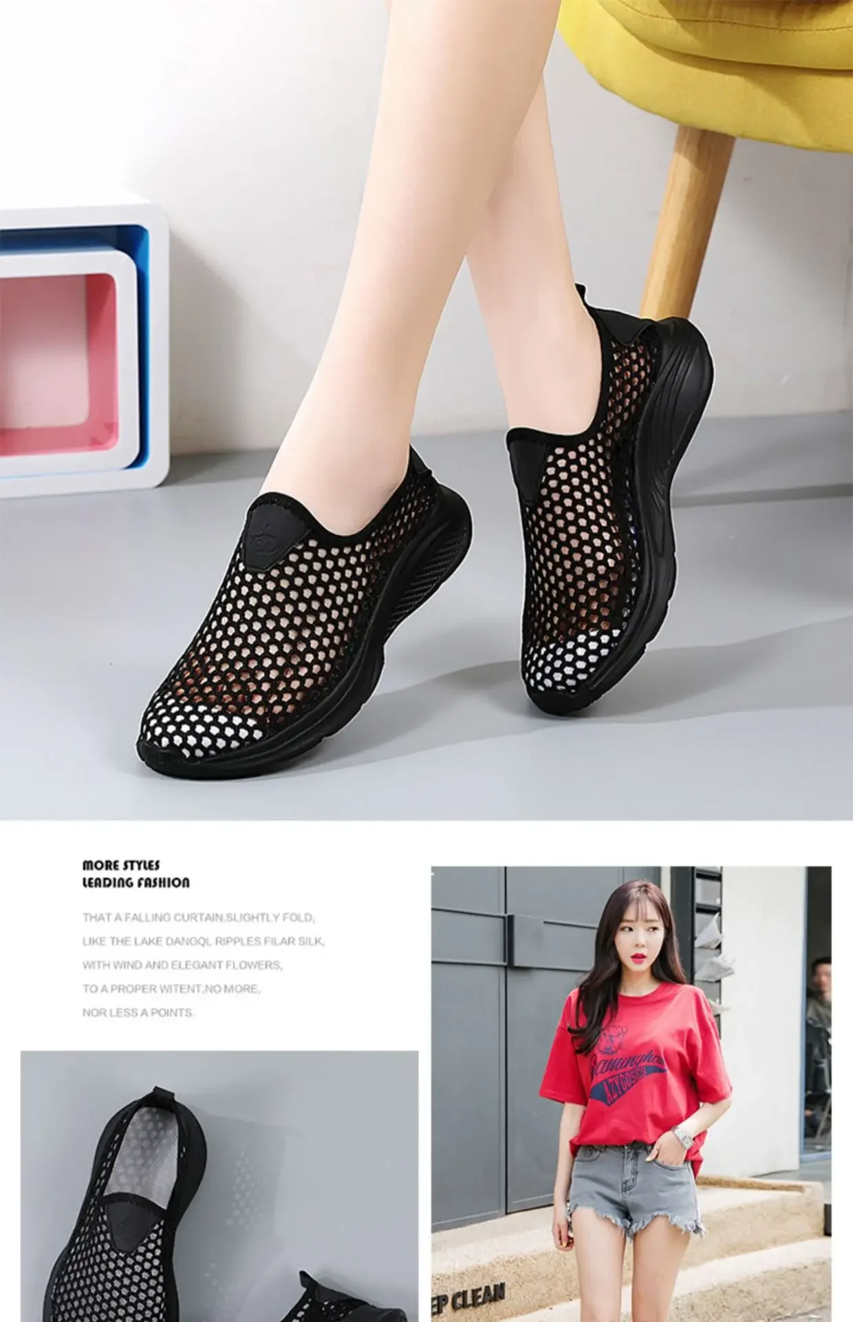 Summer women's hollow mesh breathable, lightweight, comfortable sports and leisure old Beijing cloth shoes
