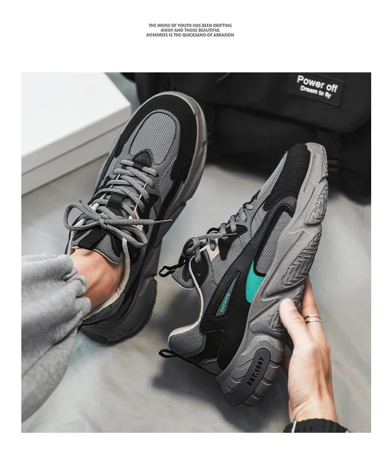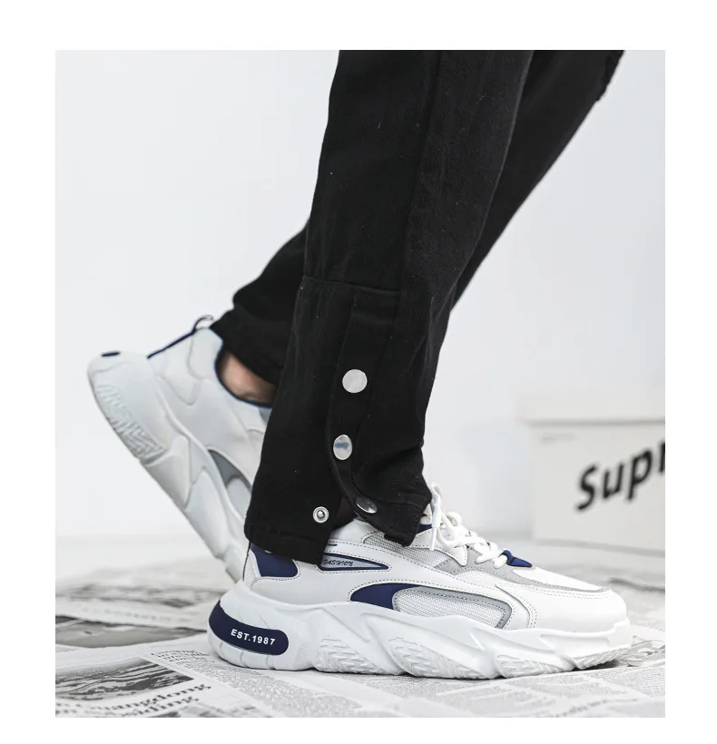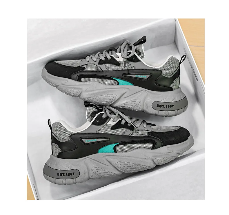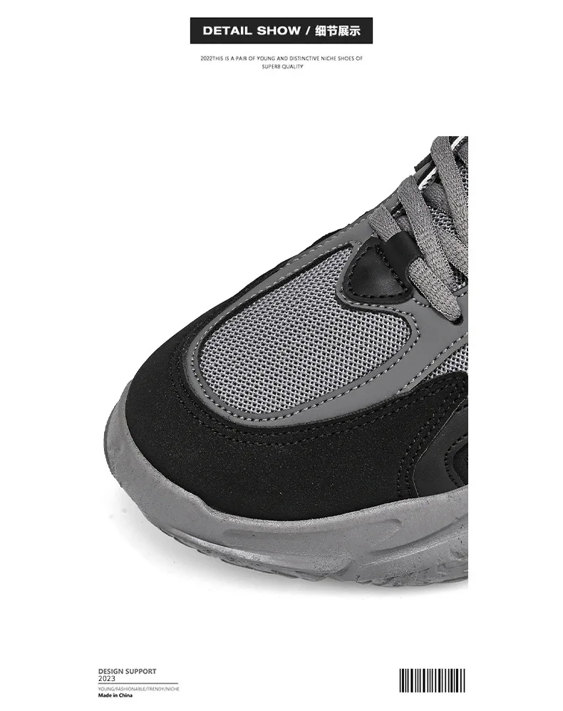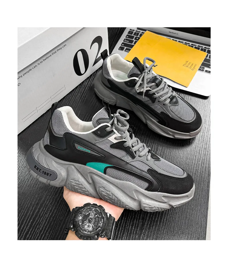 Thick Sole Versatile Clunky Sneaker For Men 2024 New Trend Mesh Lace Up Breathable Casual Sports Shoes Increased Soft Soles