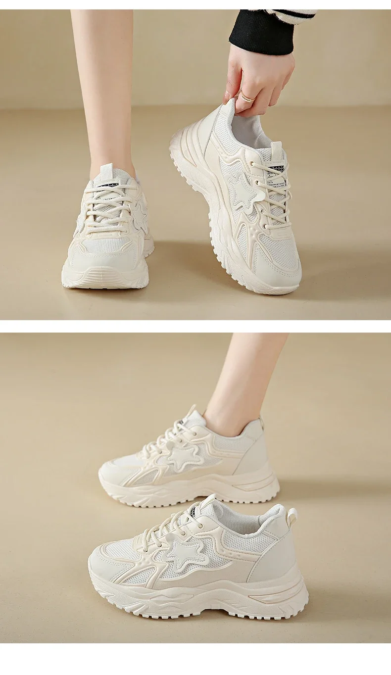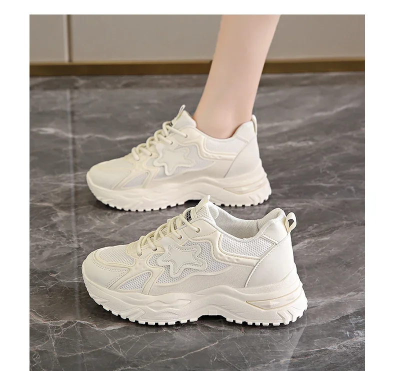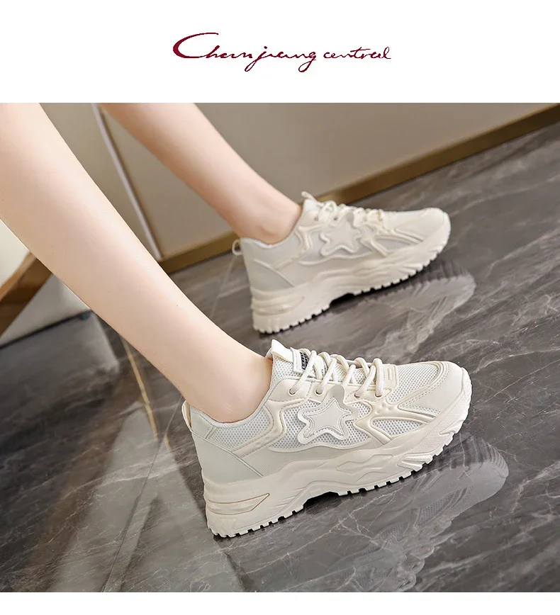 Thick soled dad shoes for women 2024 spring/summer new mesh breathable and elevated retro versatile casual sports shoes