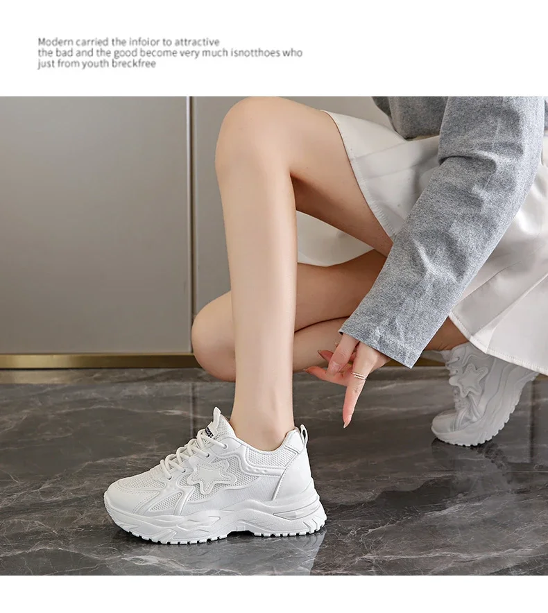 Thick soled dad shoes for women 2024 spring/summer new mesh breathable and elevated retro versatile casual sports shoes