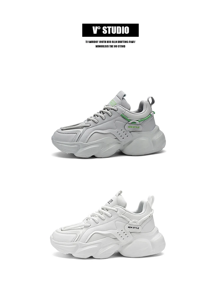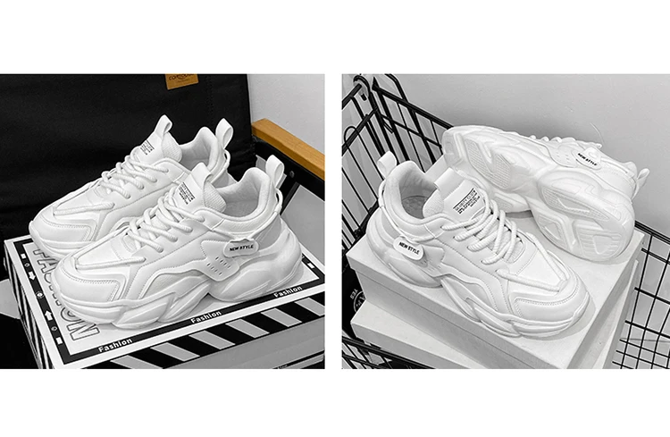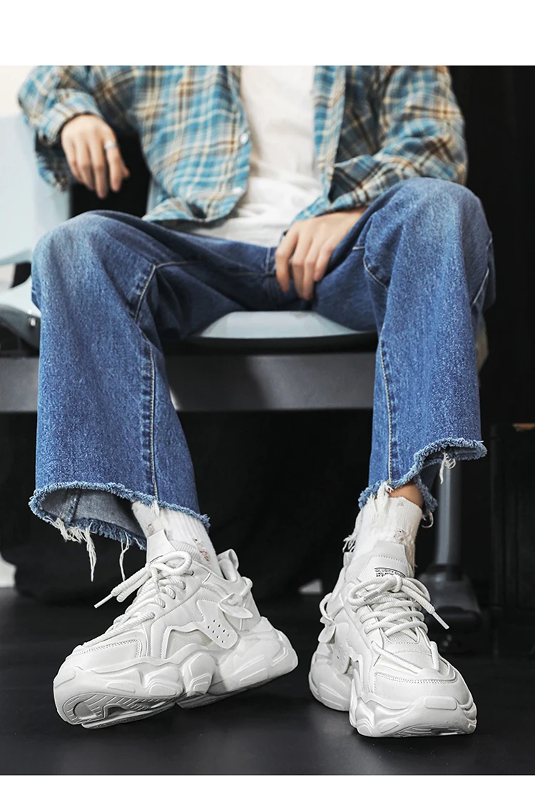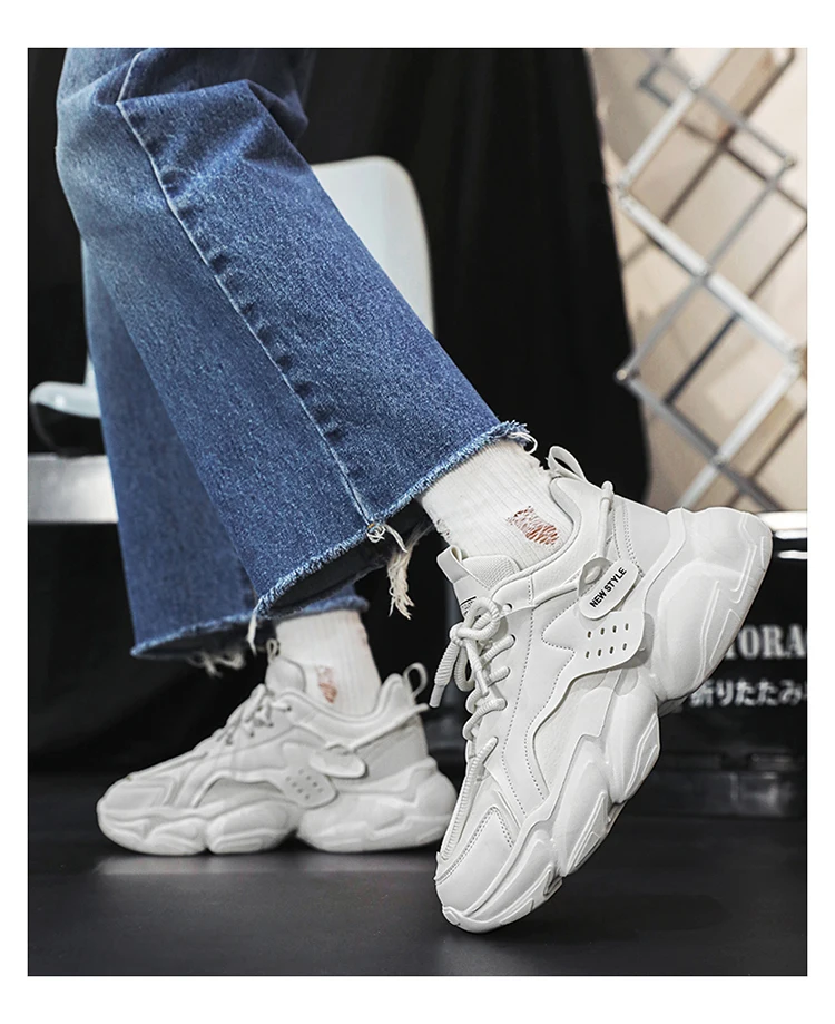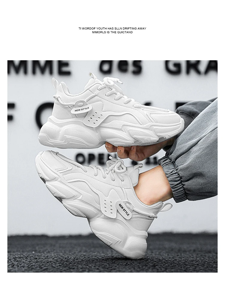 Trendy Platform Shoes for Men Sneakers Spring Lace-up Low-top Men's White Shoes Outdoor Comfortable Student Men's Sports Shoes