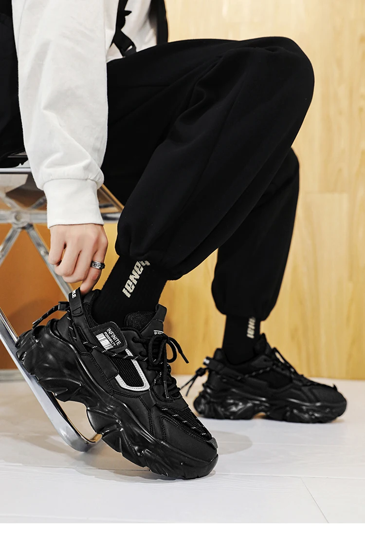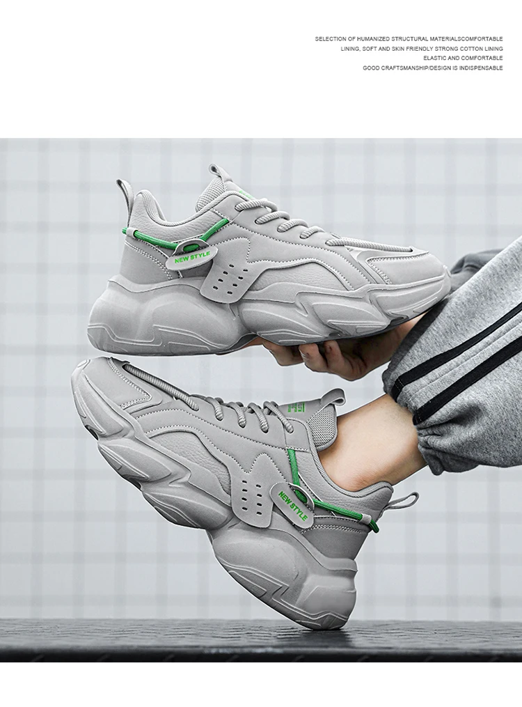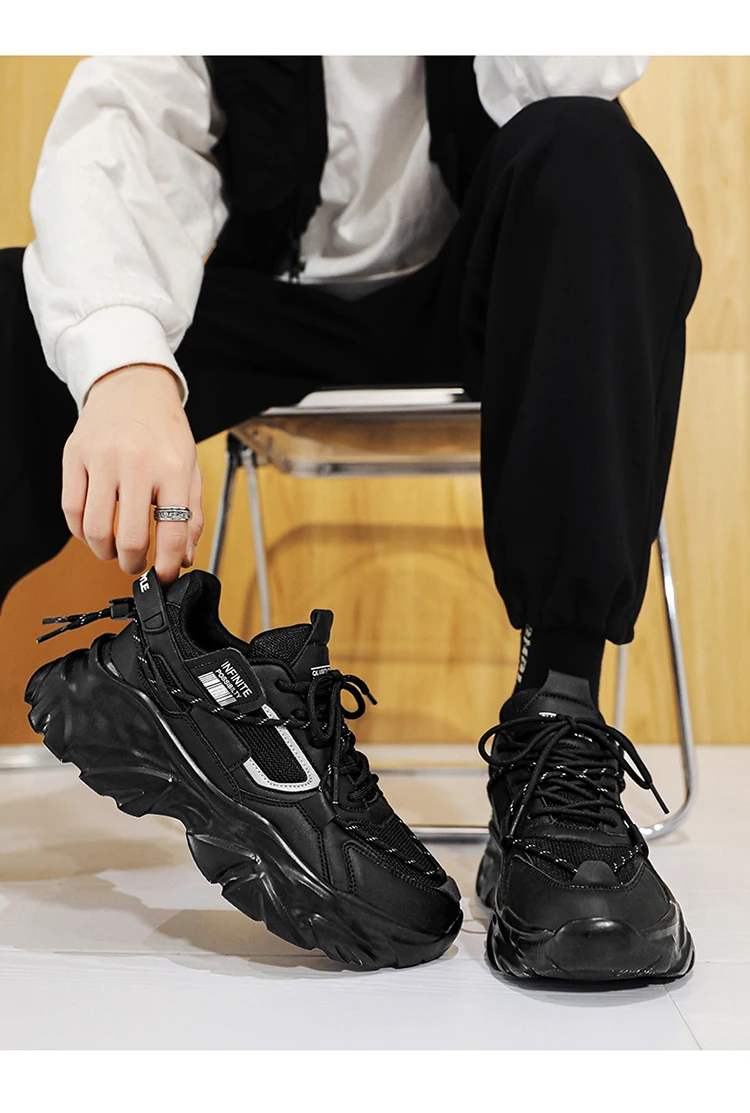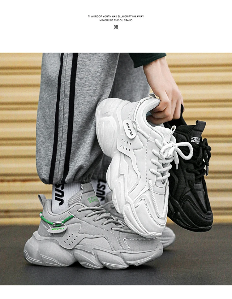 Trendy Platform Shoes for Men Sneakers Spring Lace-up Low-top Men's White Shoes Outdoor Comfortable Student Men's Sports Shoes