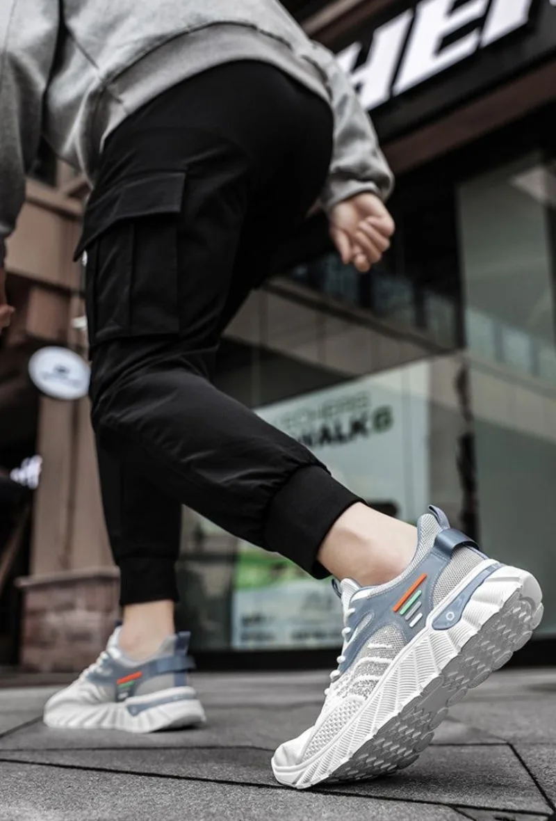 Trendy Summer Men Sneakers 2024 New Breathable Elasticity Air-cushion Running Sports Shoes Tennis Shoe Non Slip Basketball Shoes