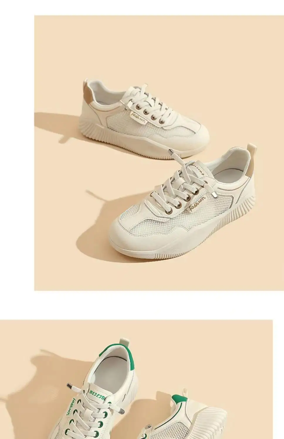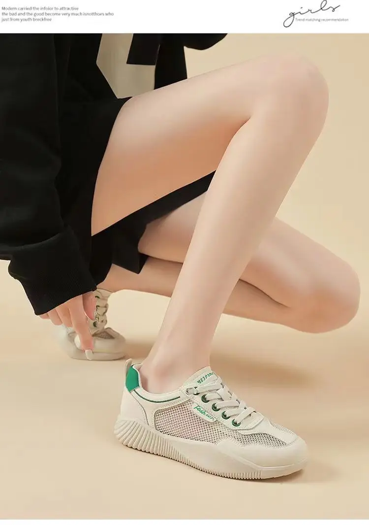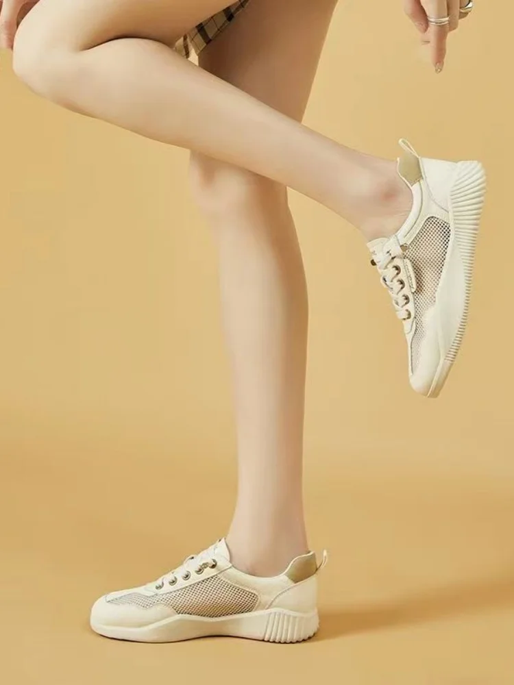 White Comfortable Woman Shoes 2024 Spring New Women's Shoe Thick Bottom Casual Flat Sneakers Round Toe Summer Mesh