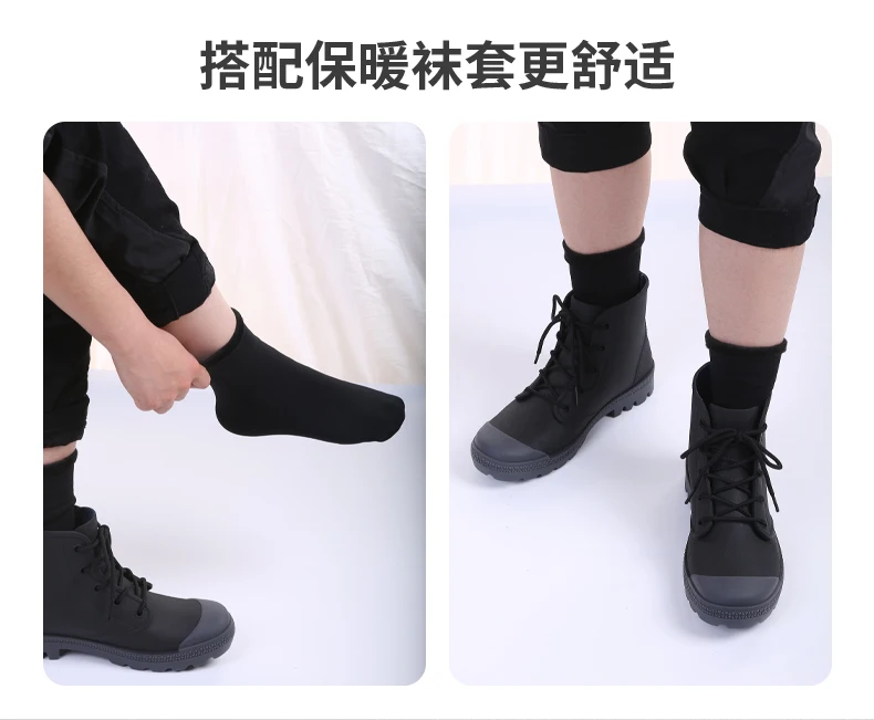 Winter Warm Rain Boots Men Fashion Lace-Up Motorcycle Outdoors Rain Boots Camping Fishing Shorts Shoes Waterproof Rain Women