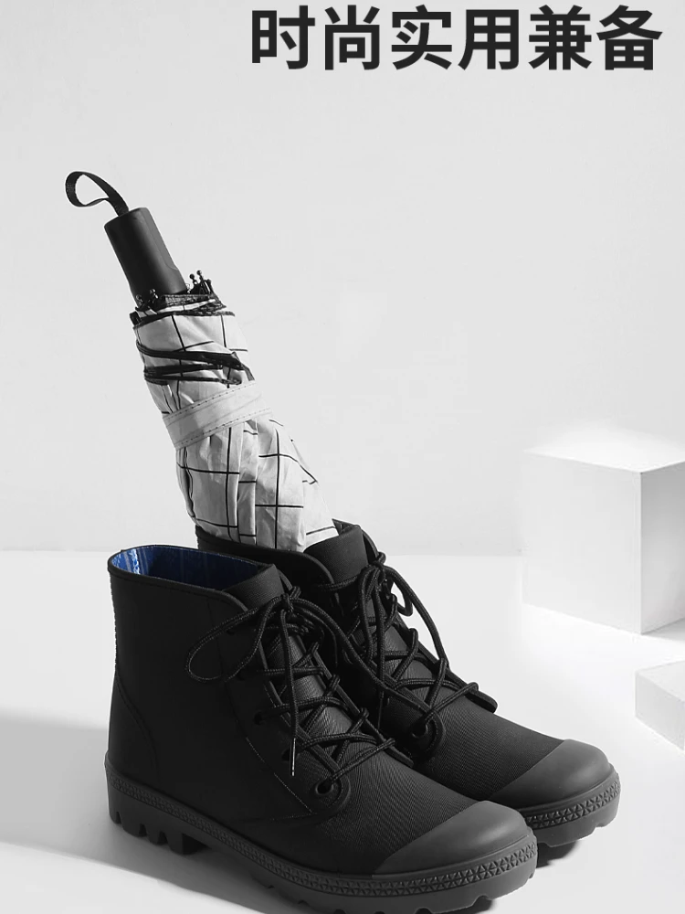 Rain Boots Men Fashion Lace-Up Motorcycle outdoors Rain Boots