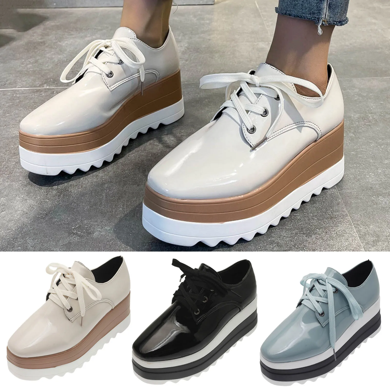 Women's Fashion Bright Leather Solid Color Square Toe Strap Platform Casual Shoes