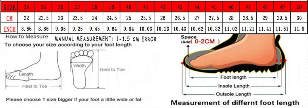 Please note 1. Choose the size according to your foot length (don't/don't choose the size according to the regular size in your country!!! 2. If your feet are a bit wide or the instep is a bit thick, it is better to choose a size