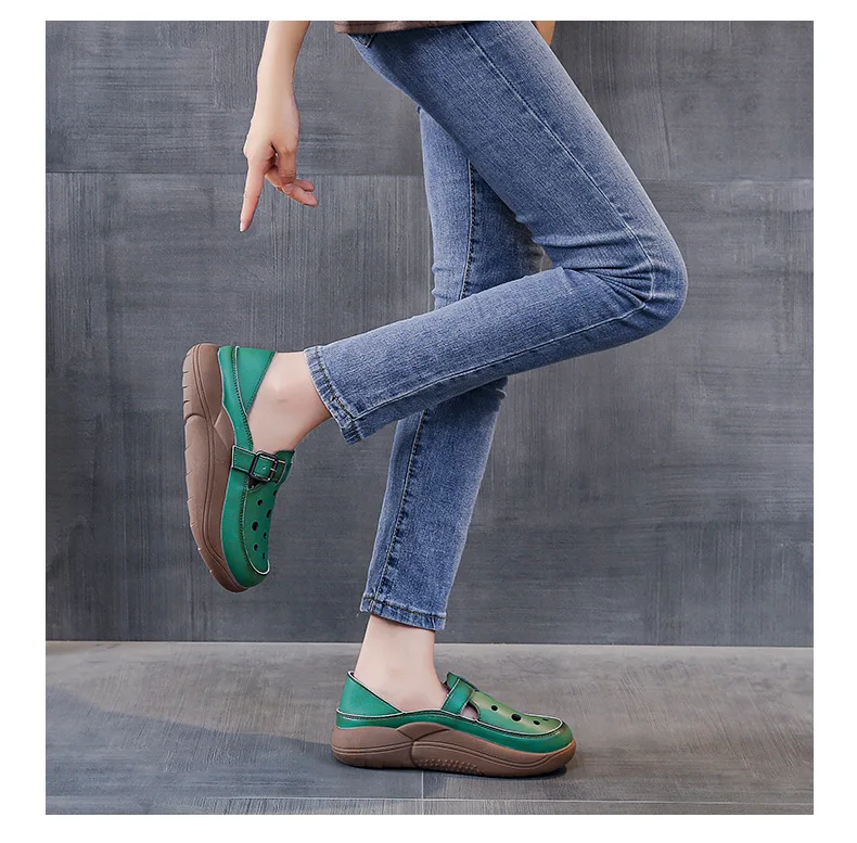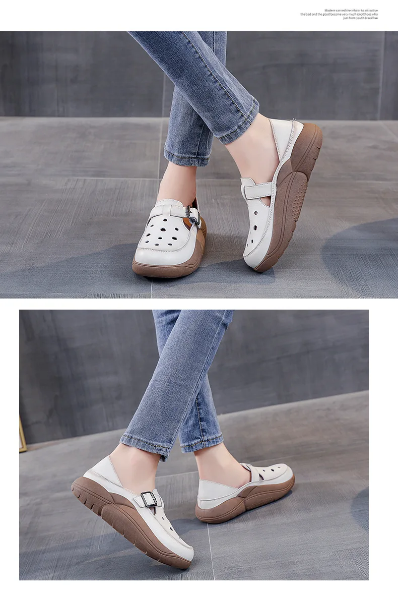 Women Buckle Shoes Round Head Solid Colour Sneakers Summer Hollow Comfortable Thick Bottom Sandals Zapatillas Plataforma Mujer