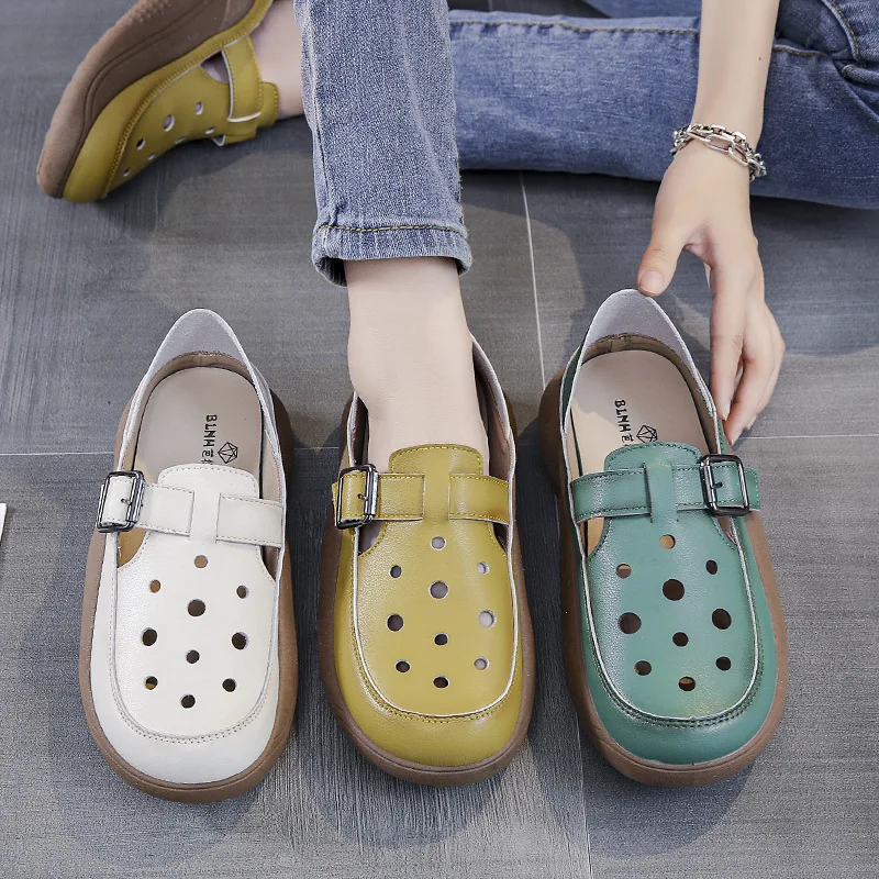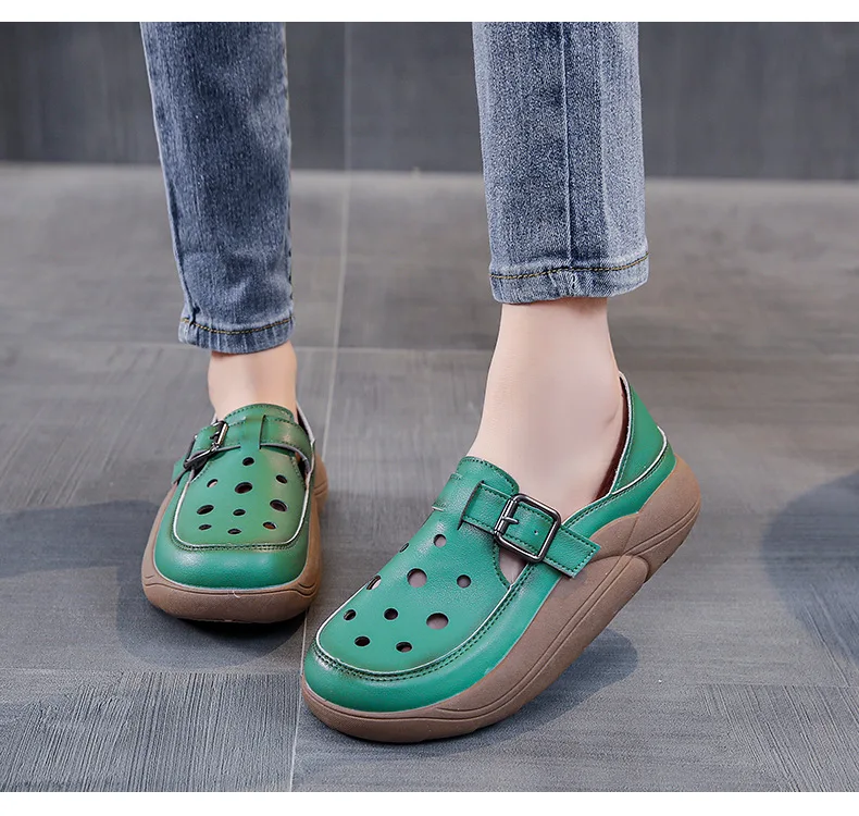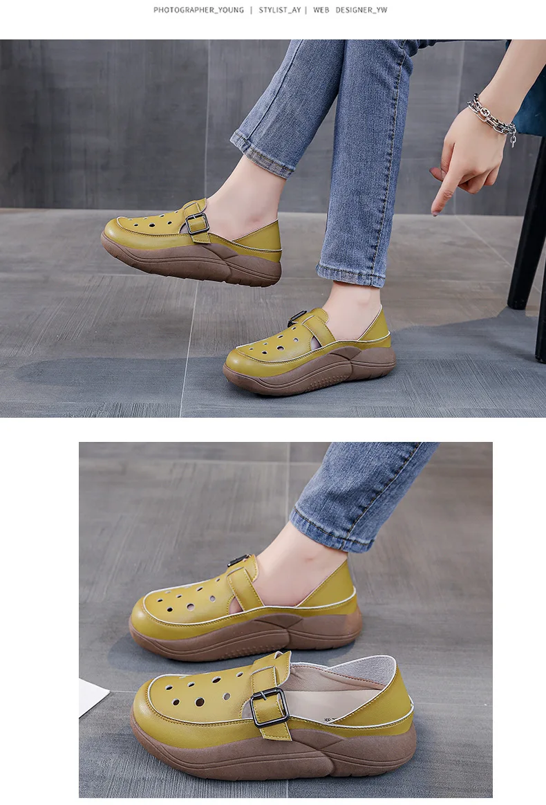 Women Buckle Shoes Round Head Solid Colour Sneakers Summer Hollow Comfortable Thick Bottom Sandals Zapatillas Plataforma Mujer