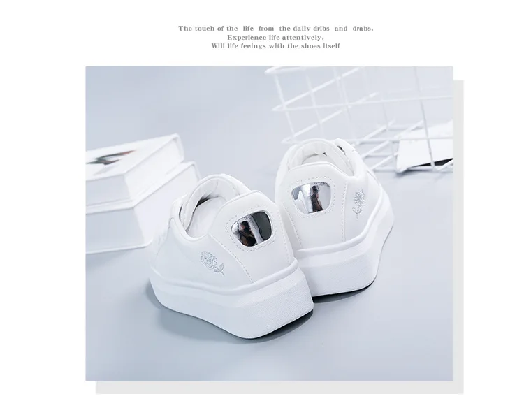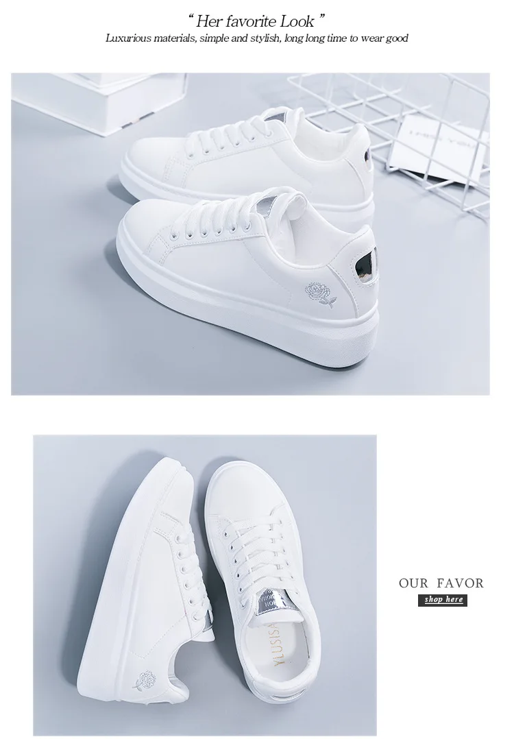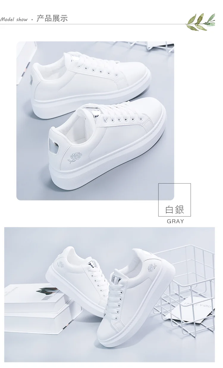 Women Casual Shoes Spring Autumn Sneakers Fashion White Breathable Embroidered Flower Lace-Up Tennis shoes