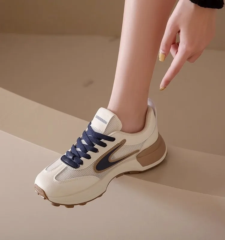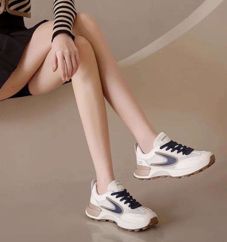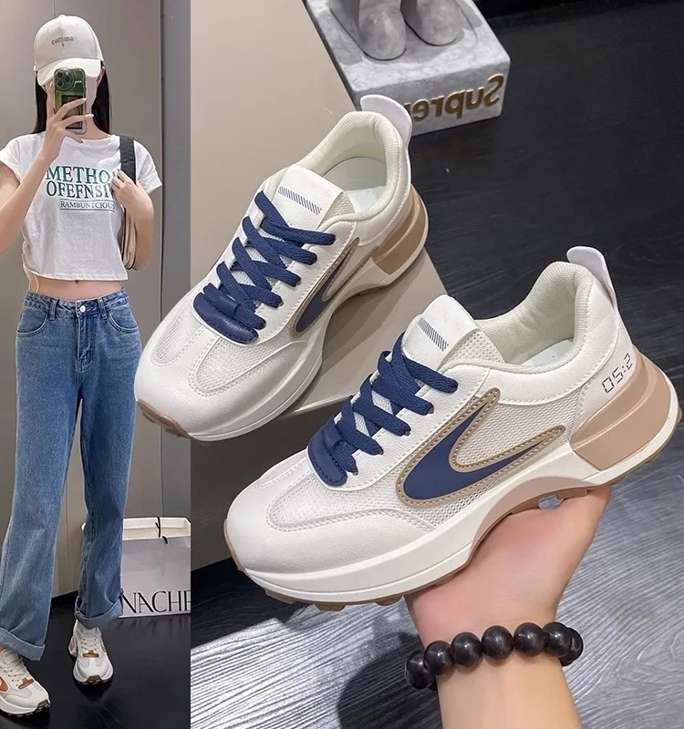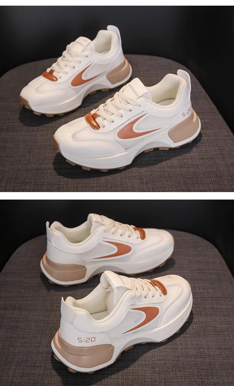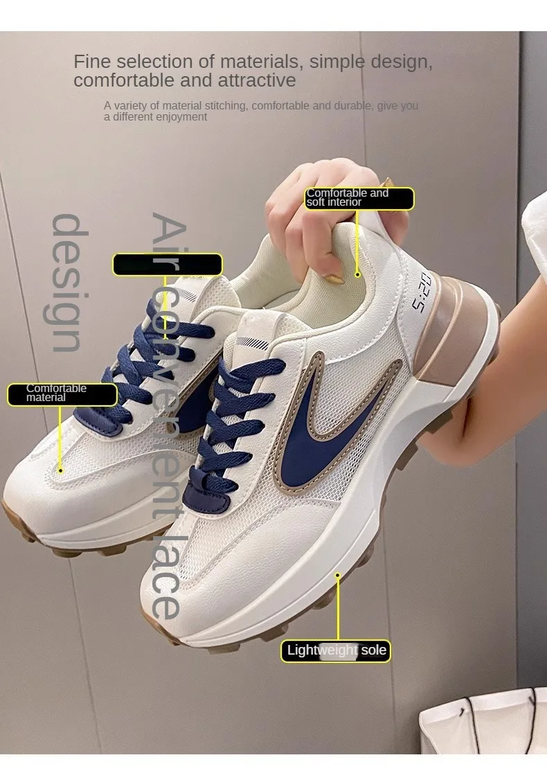 Women Fashion Platform Flats Sneakers Autumn Breathable Lace Up Wedge Sport Shoes Comfort Soft Travel White Sports Casual Shoes