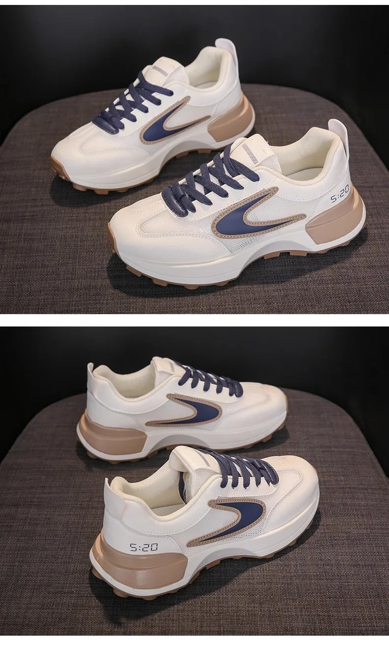 Women Fashion Platform Flats Sneakers Autumn Breathable Lace Up Wedge Sport Shoes Comfort Soft Travel White Sports Casual Shoes