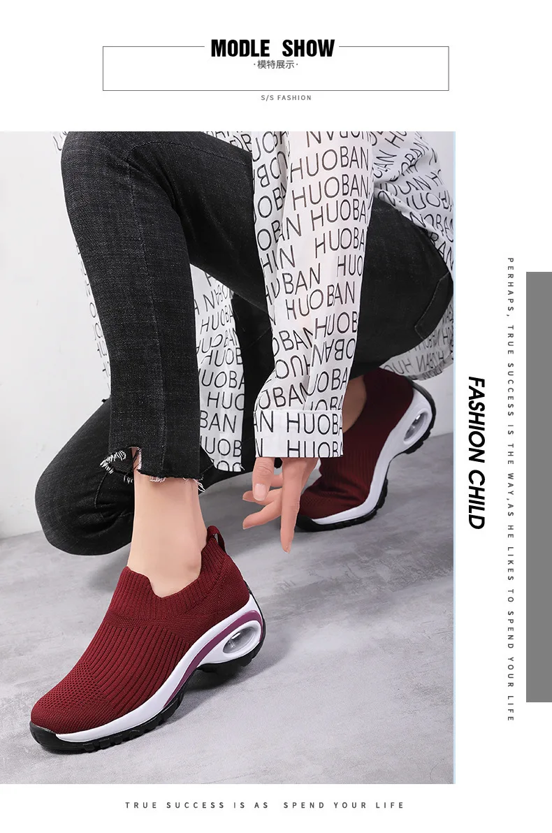 Women Fashion Wedge Platform Sneakers Female New Casual Sport Shoes Ladies Air Cushion Running Mesh Breathable Shoes Wholesale