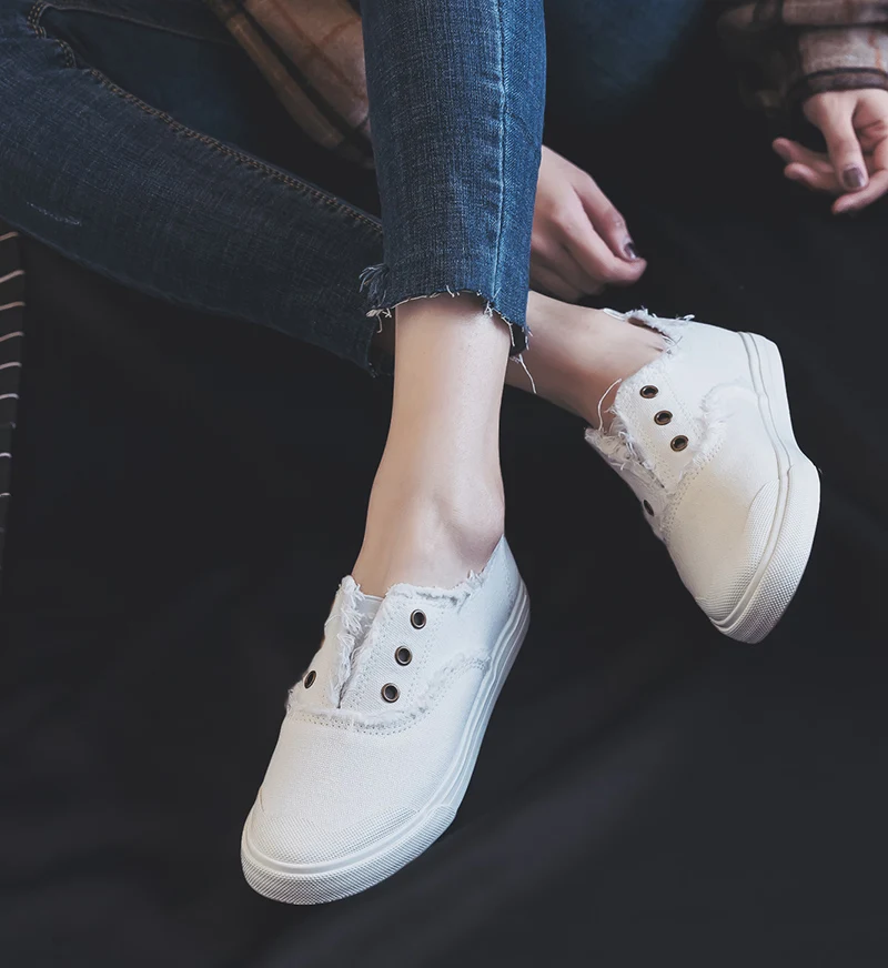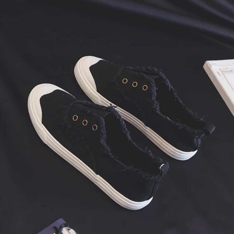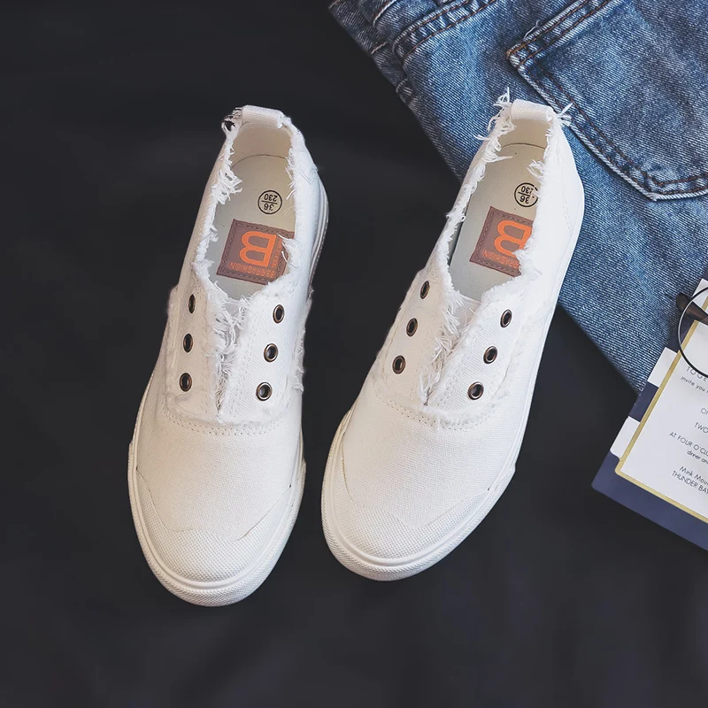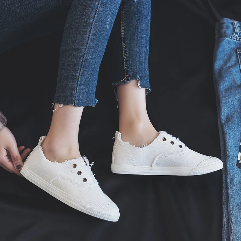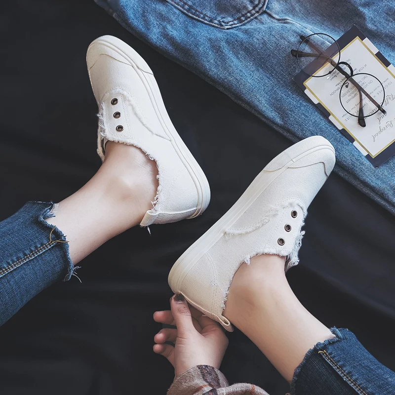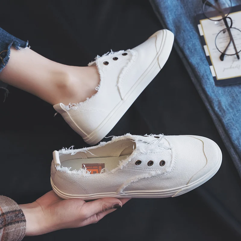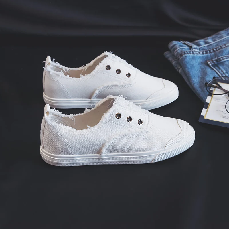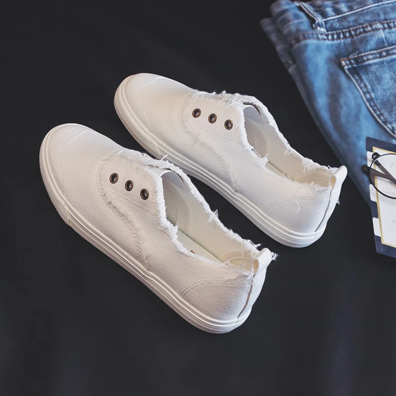 Women Loafers White Concise Basic Style Solid Color Slip on Lady Spring Vulcanized Shoe Canvas Cloth Sneakers Nice Quality 35-40