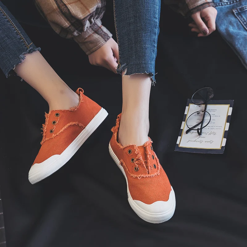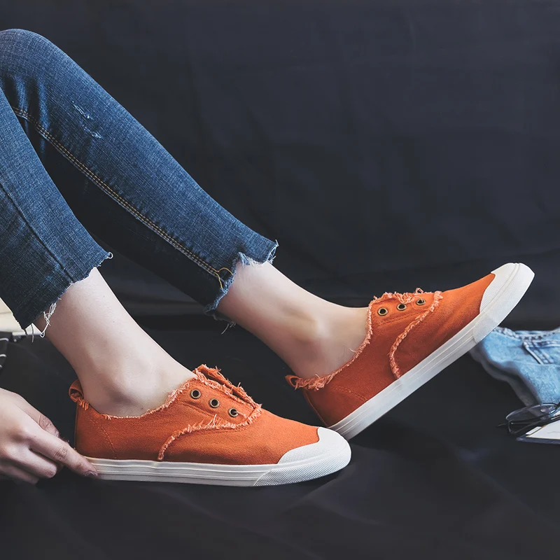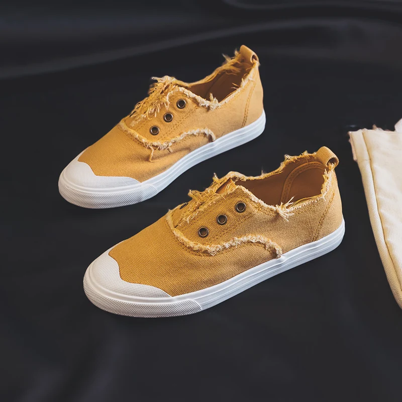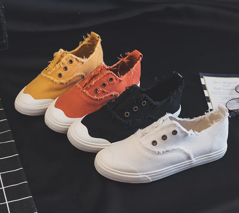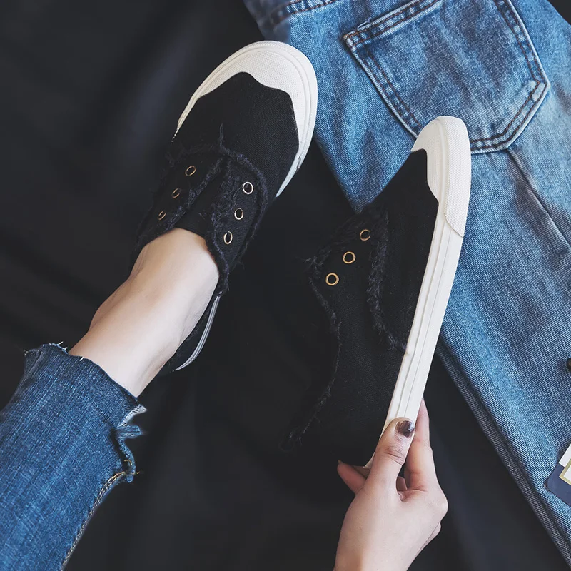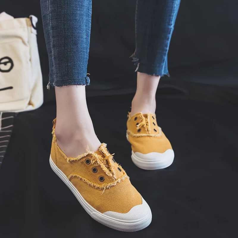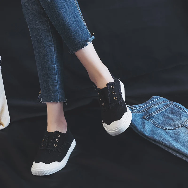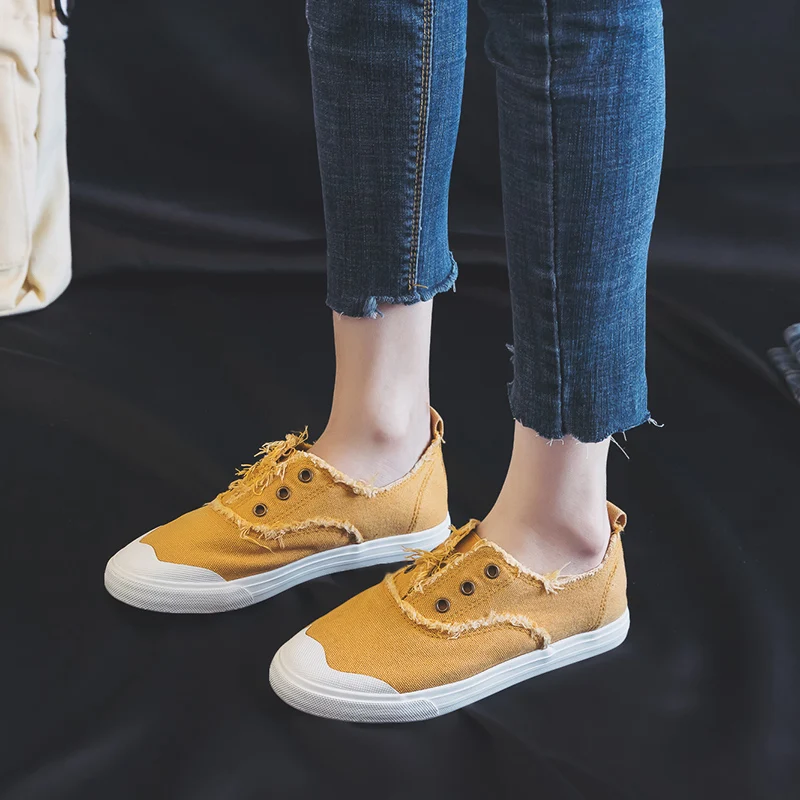 Women Loafers White Concise Basic Style Solid Color Slip on Lady Spring Vulcanized Shoe Canvas Cloth Sneakers Nice Quality 35-40