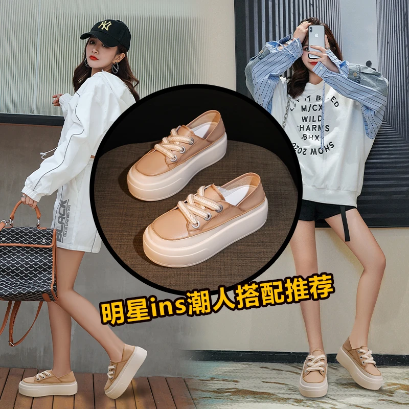 Women Platform Sneakers 2022 Spring Autumn New Fashion All-match Solid Color Women Casual Shoes Low Shoes for Walking Shoes