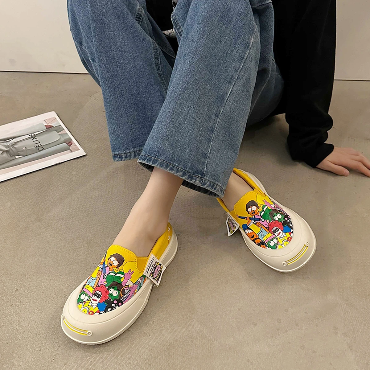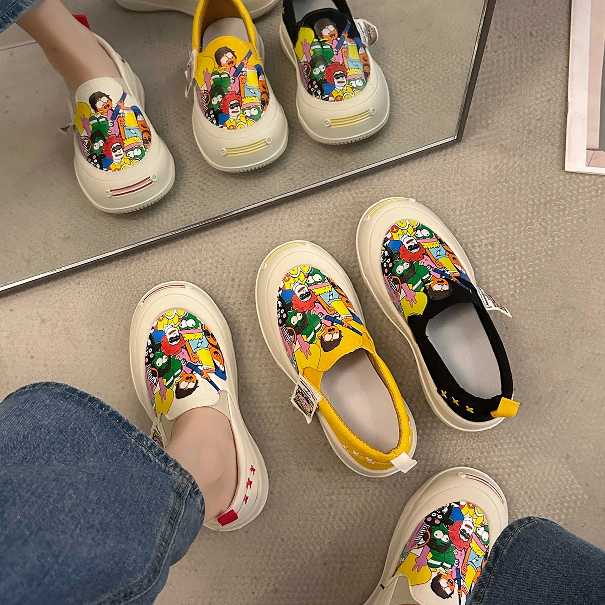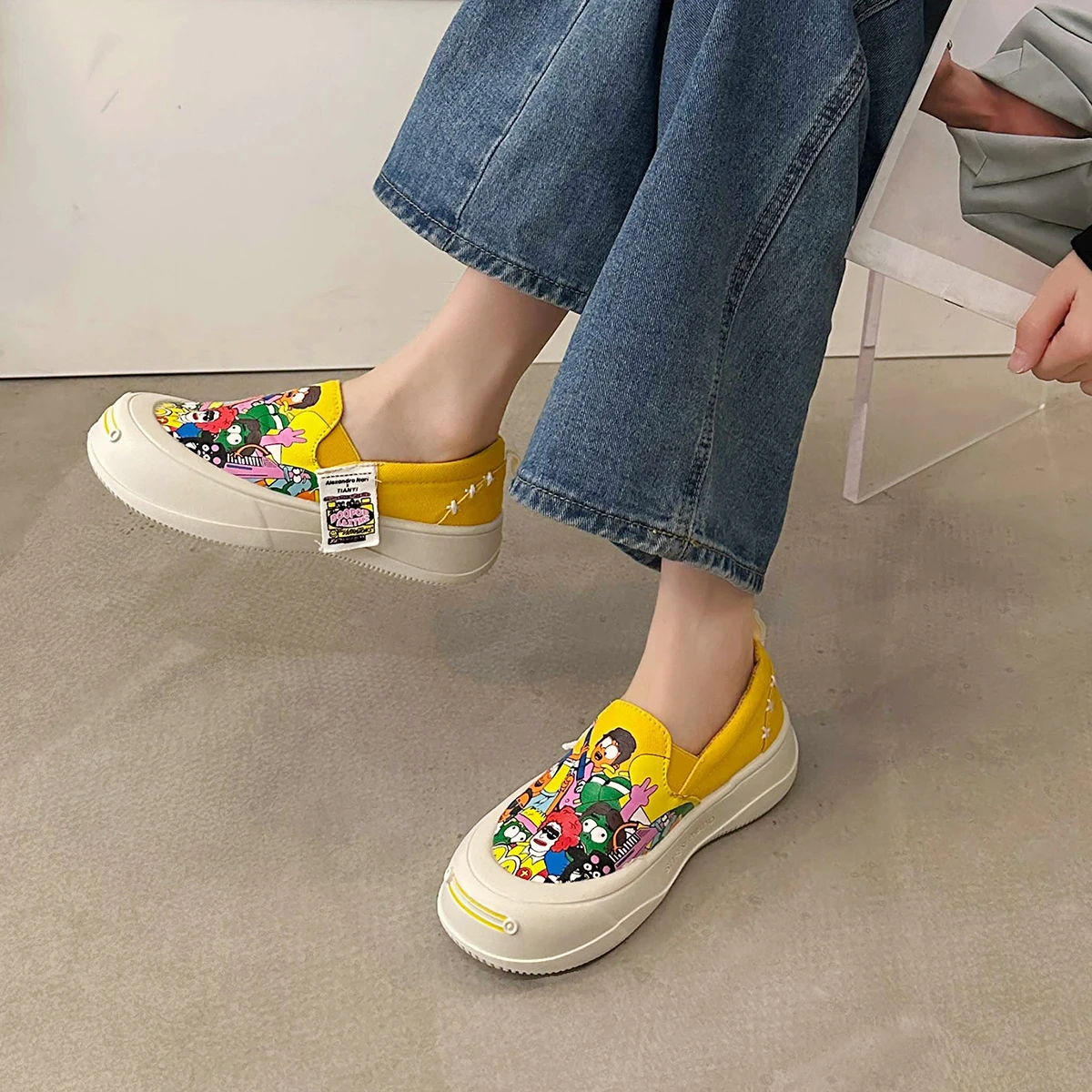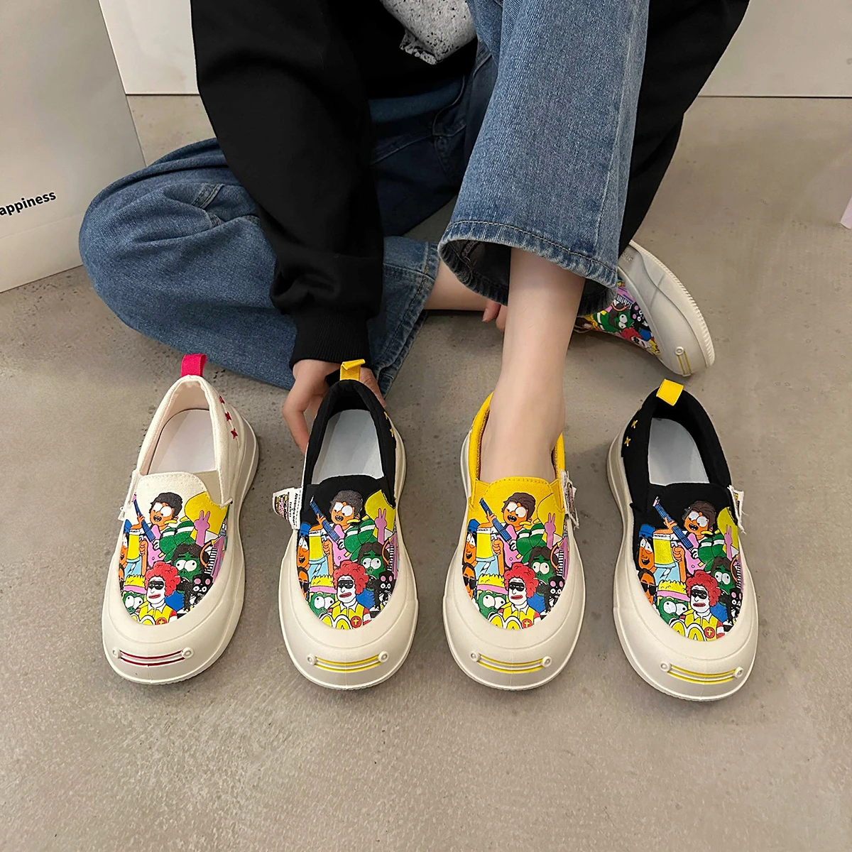 Women Platform Vulcanized Shoes 2023 New Woman Thick Sole Canvas Loafers Fashion Graffiti Sneakers Outdoor Flats Sports Shoes