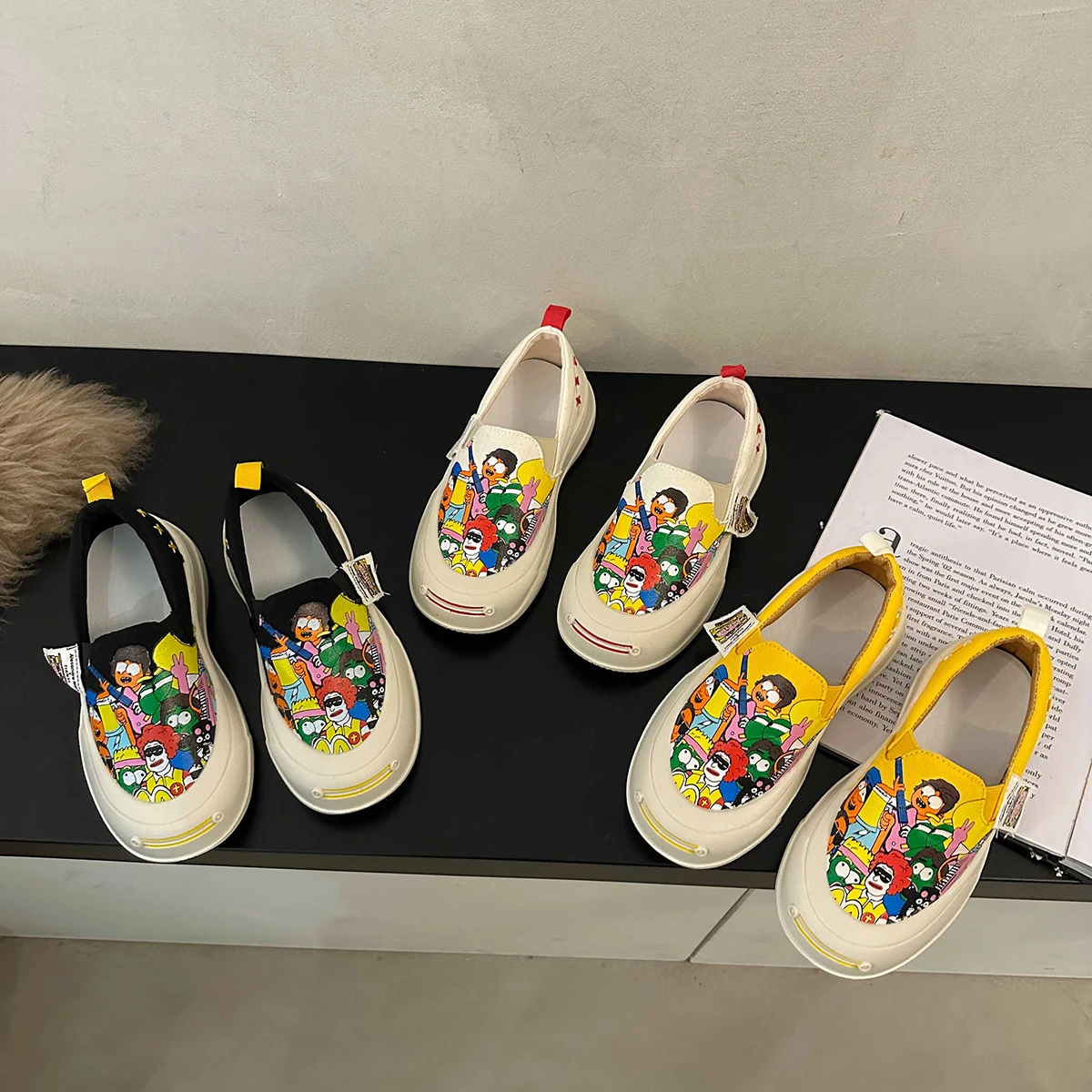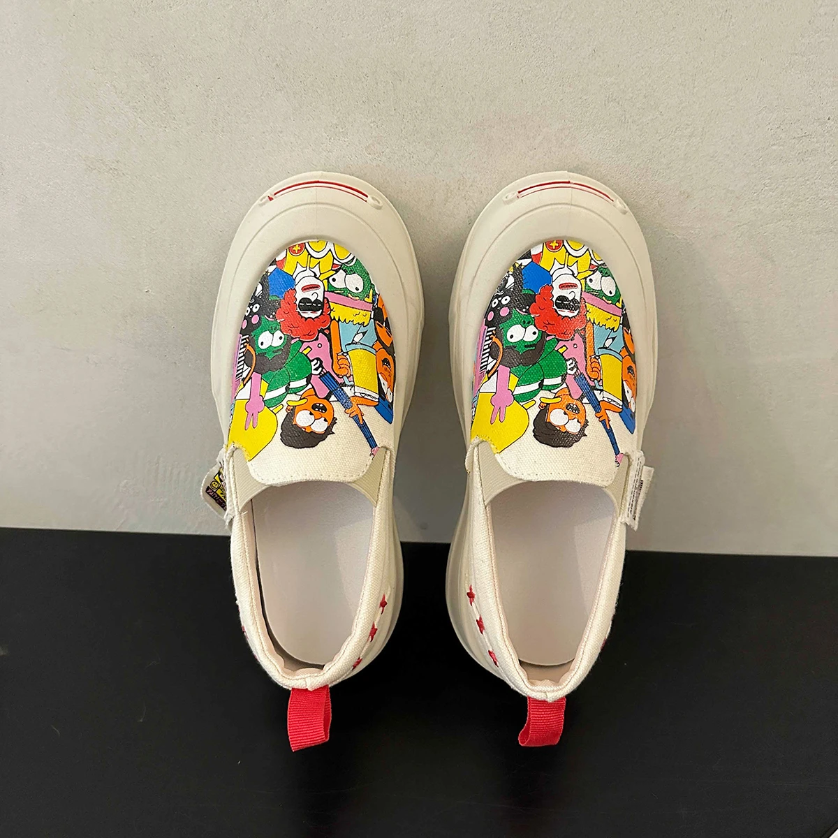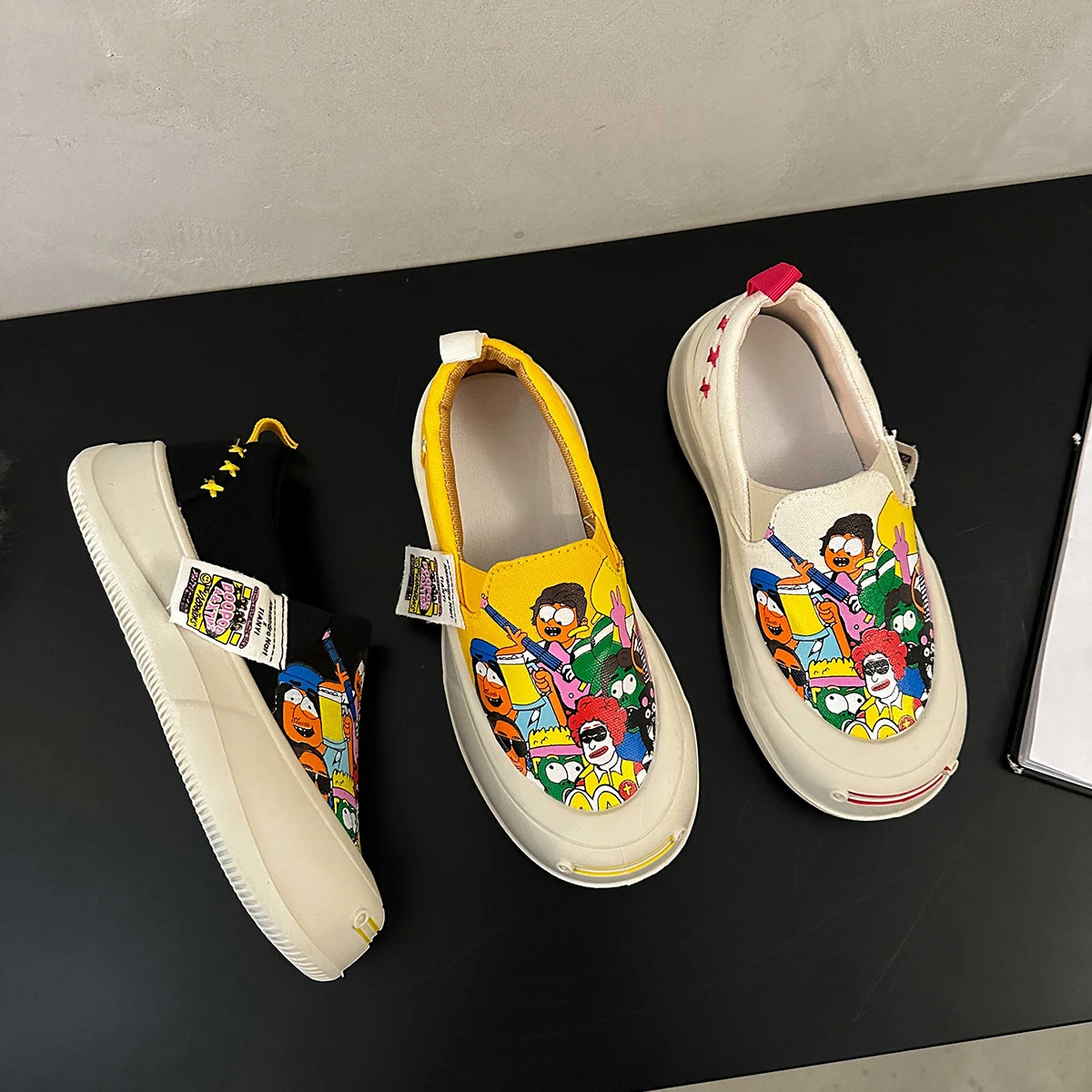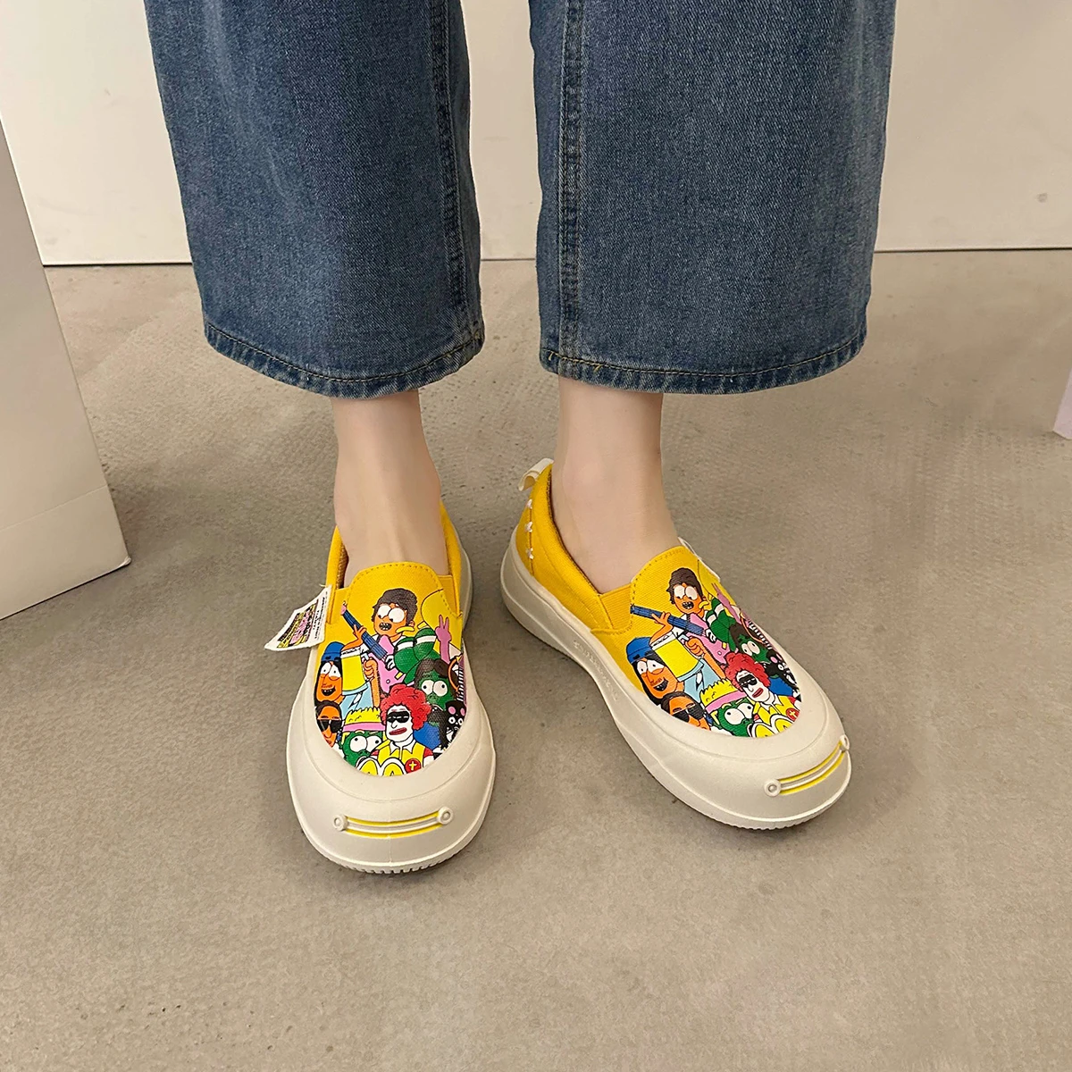 Women Platform Vulcanized Shoes 2023 New Woman Thick Sole Canvas Loafers Fashion Graffiti Sneakers Outdoor Flats Sports Shoes