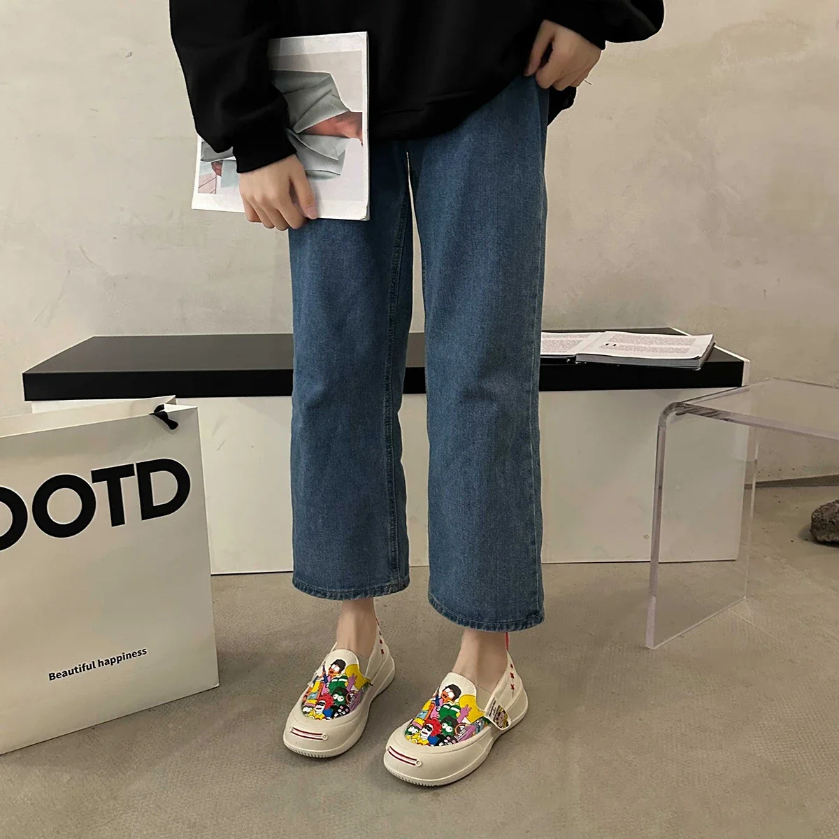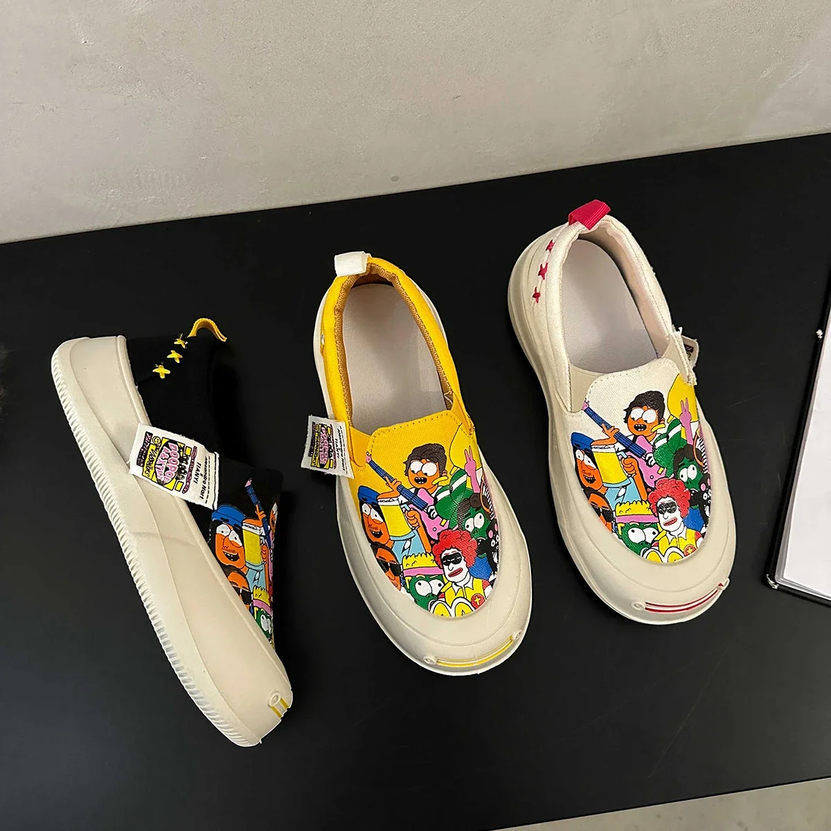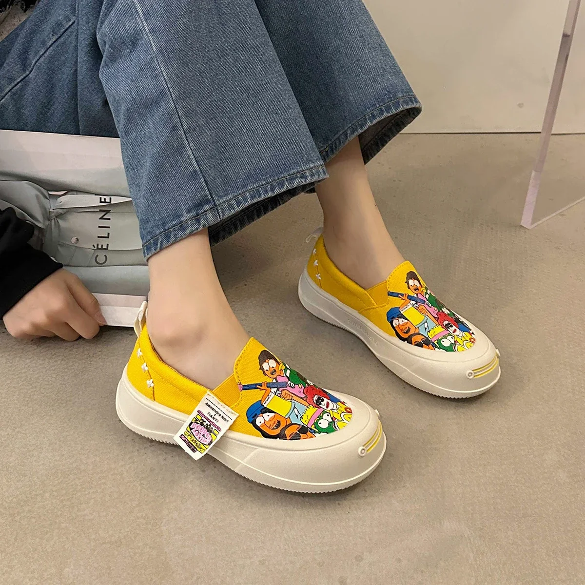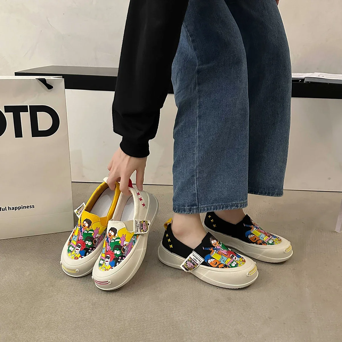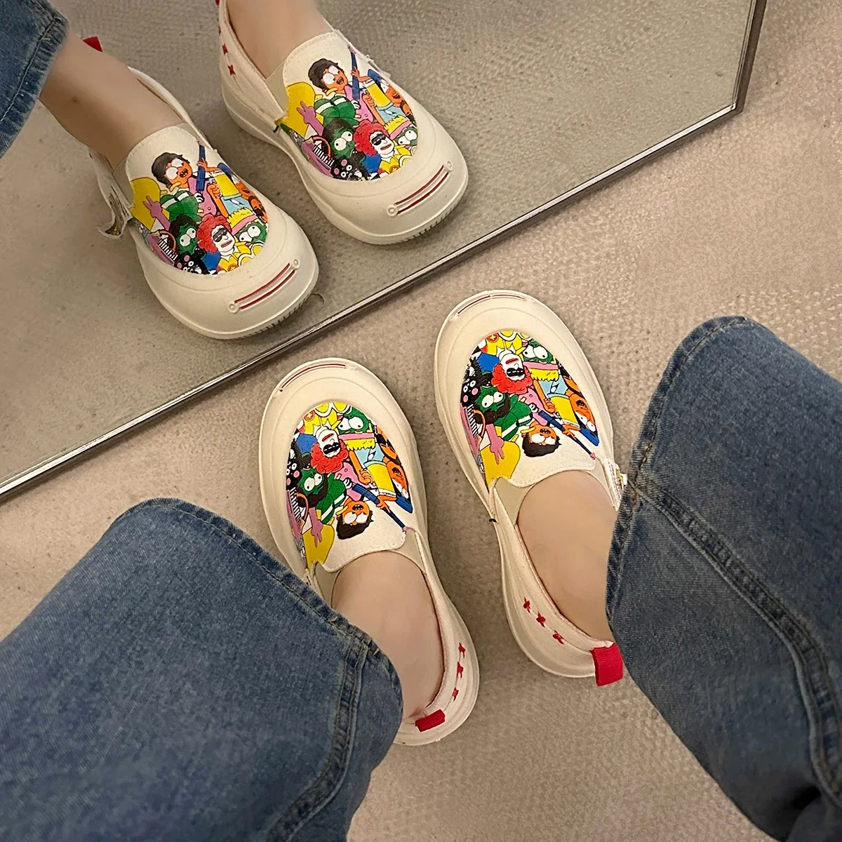 Women Platform Vulcanized Shoes 2024 New Woman Thick Sole Canvas Loafers Fashion Graffiti Sneakers Outdoor Flats Sports Shoes