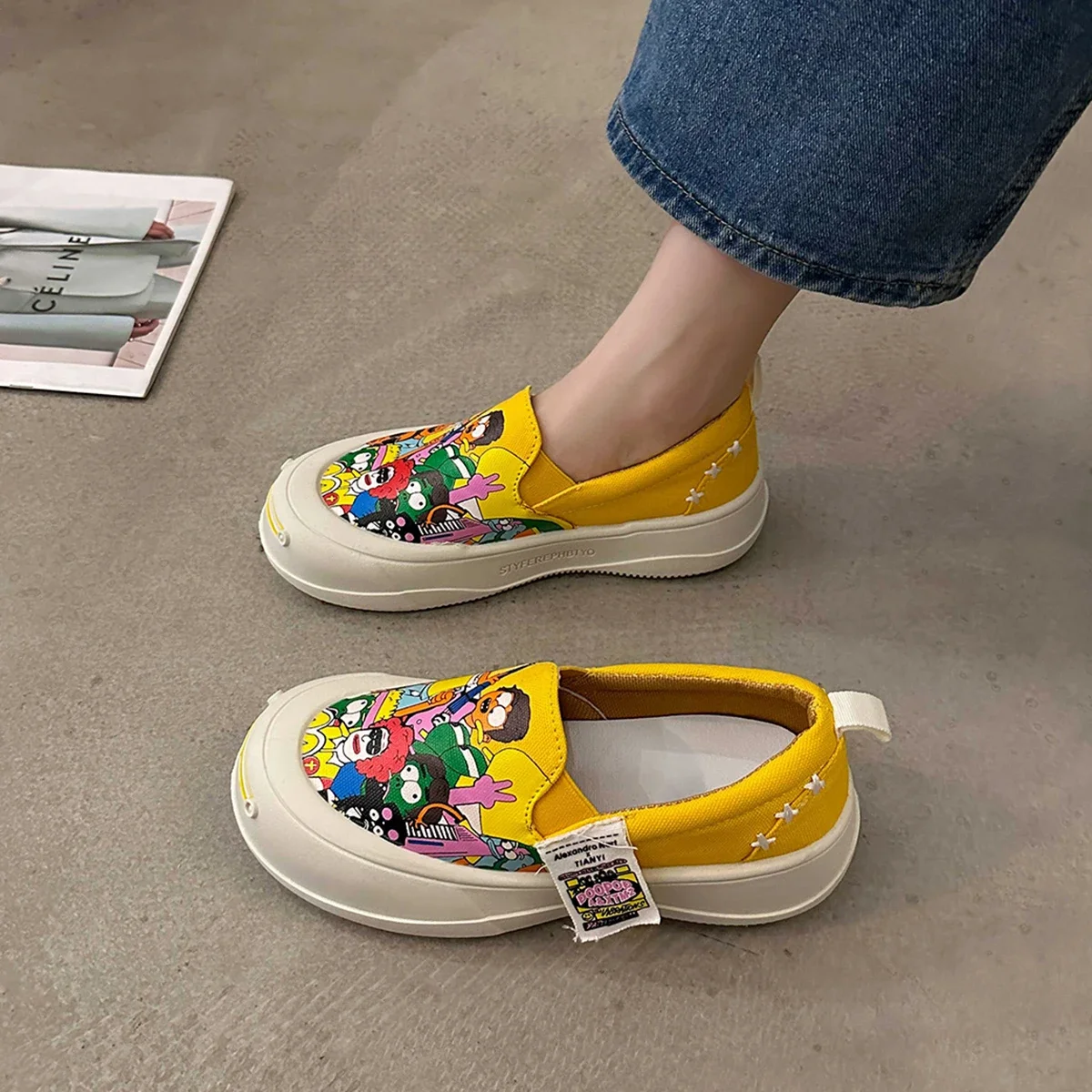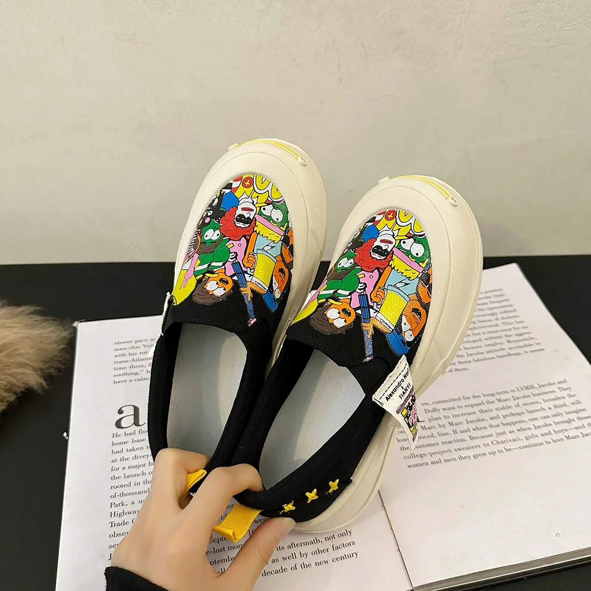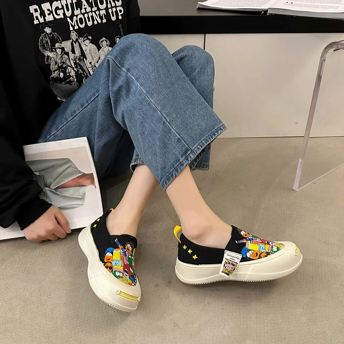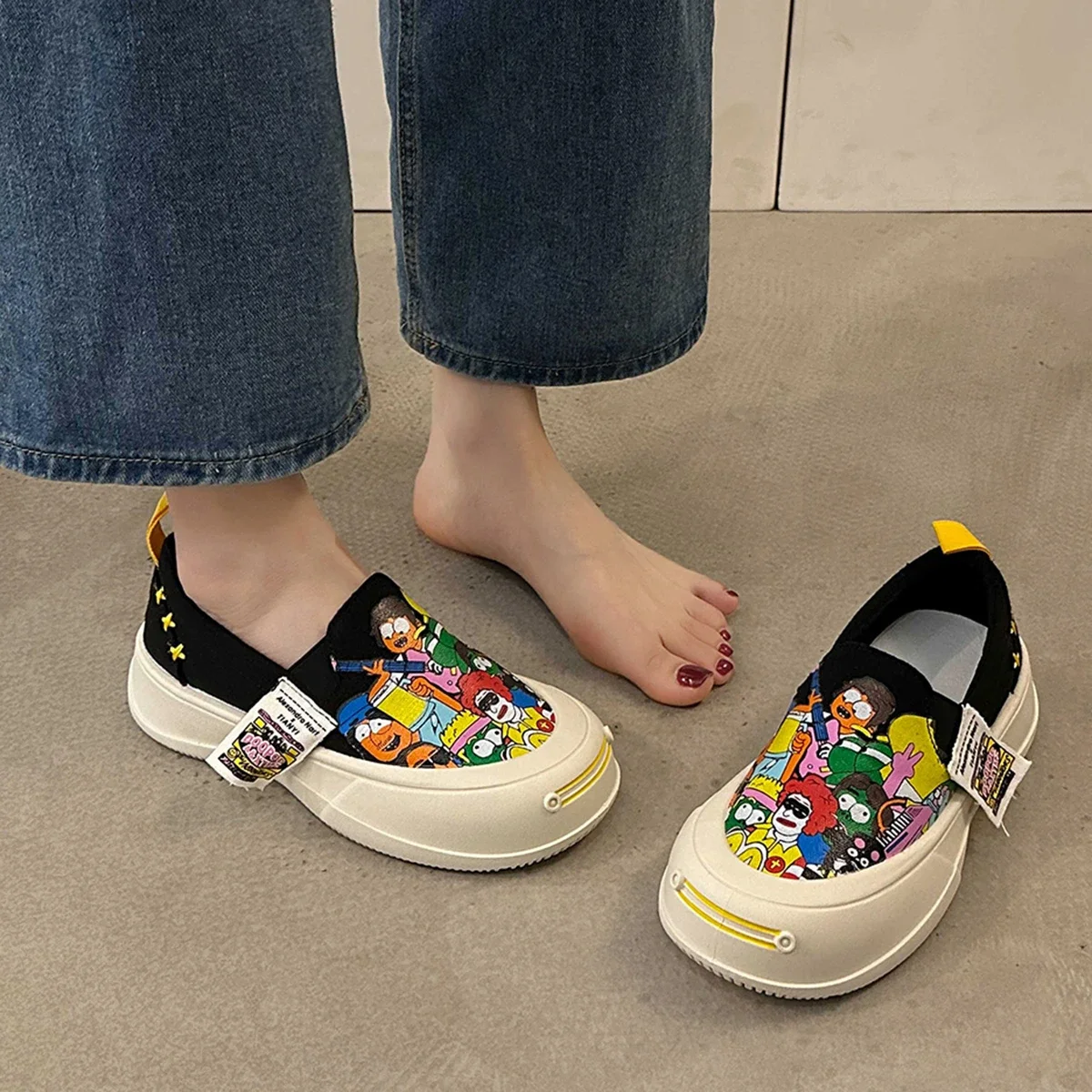 Women Platform Vulcanized Shoes 2024 New Woman Thick Sole Canvas Loafers Fashion Graffiti Sneakers Outdoor Flats Sports Shoes