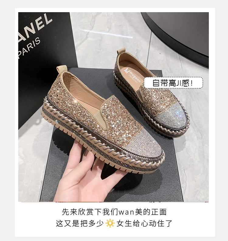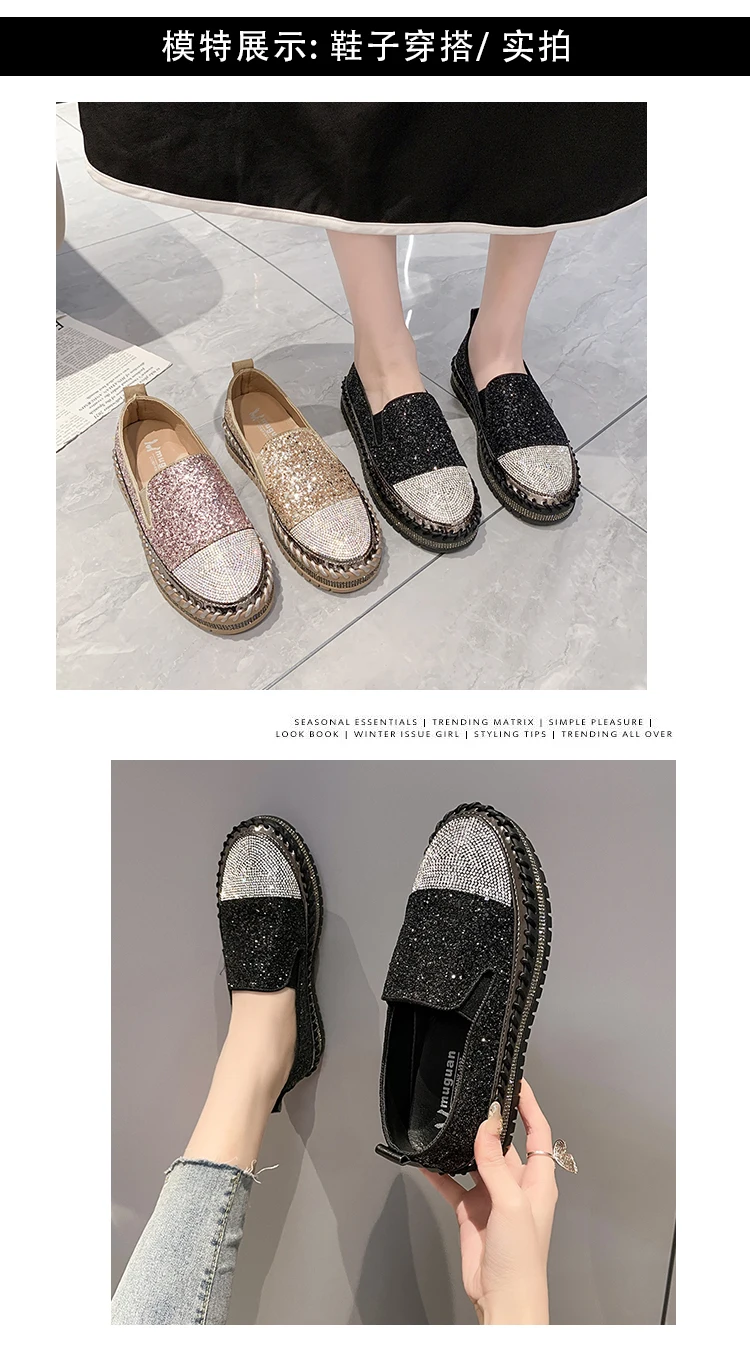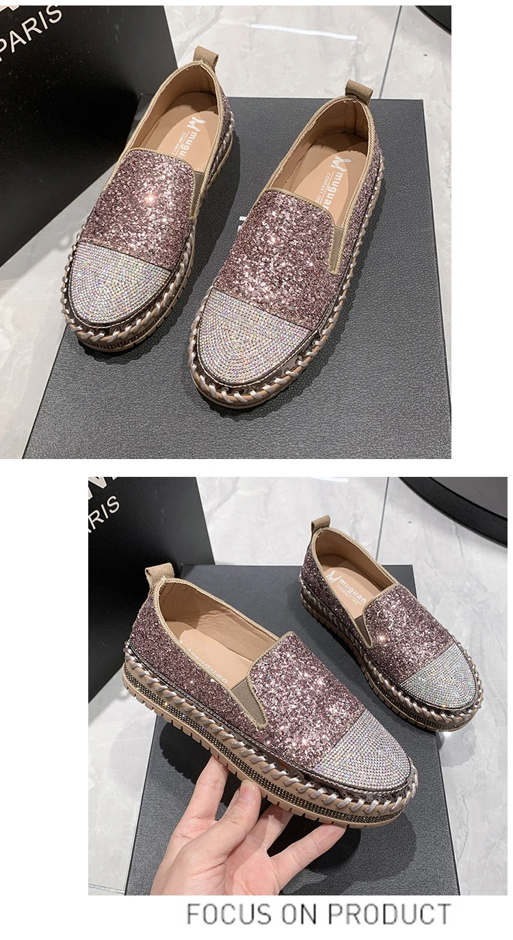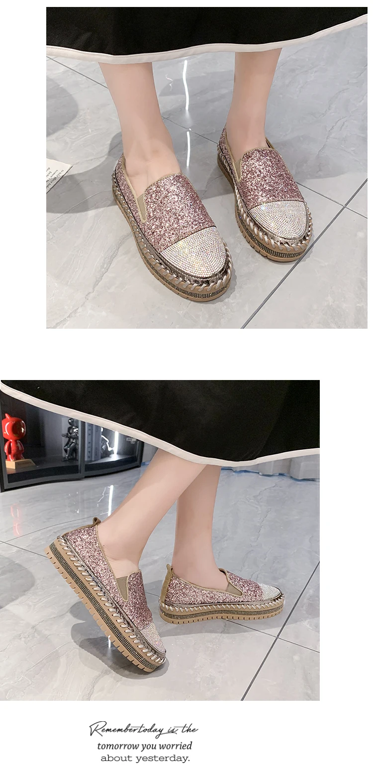 Women Shining Rhinestone Flats Loafers Slip-on Thick Botton Casual Woman Crystal Shoes Female Fashion Sneakers Sports Running