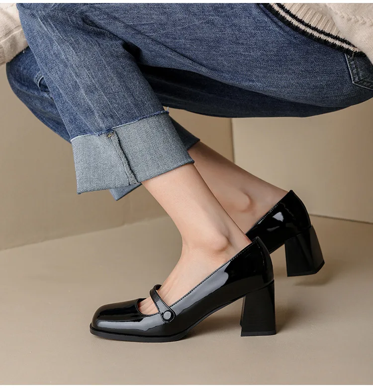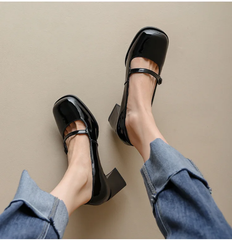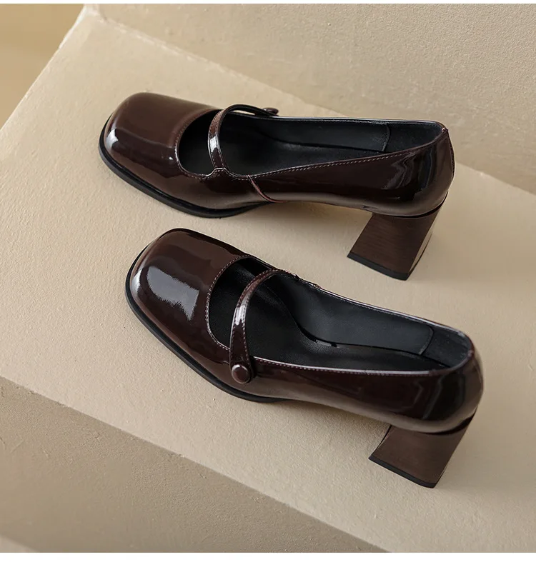 Spring and summer 2022 new French retro niche design fashion one-word with square head high heels Mary Jane single shoes female