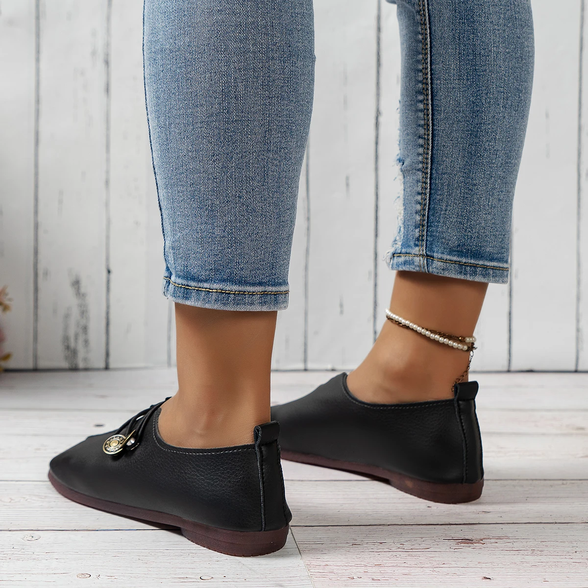 Women Shoes Brand Designer Shoes Woman Square Toe Japanned Leather Flats Vintage Narrow Band Loafers Luxury Shoes for Women