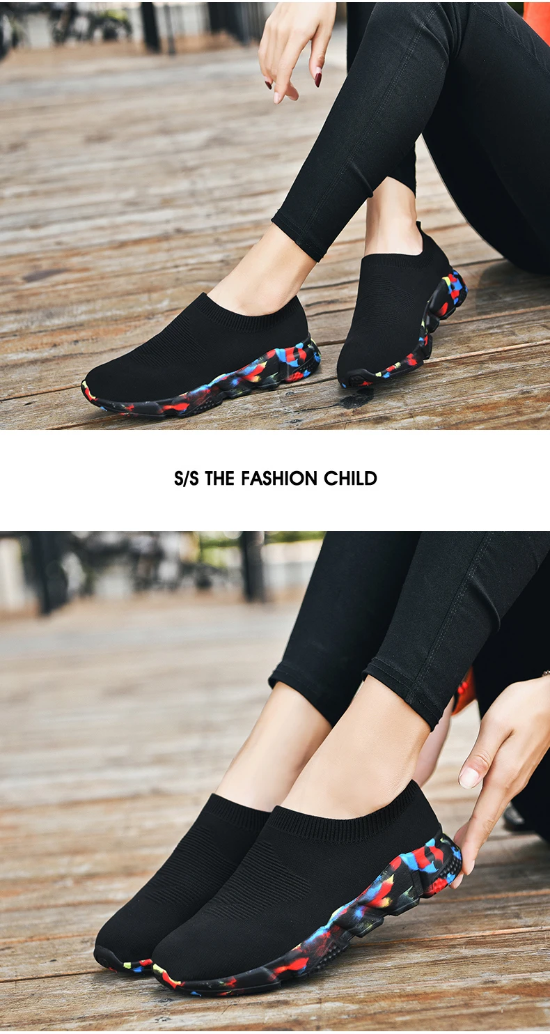 Women Shoes Knitting Sock Sneakers Women Lightweight Casual Slip On Flat Laides Shoes Woman Plus Size Loafers Walking plus size