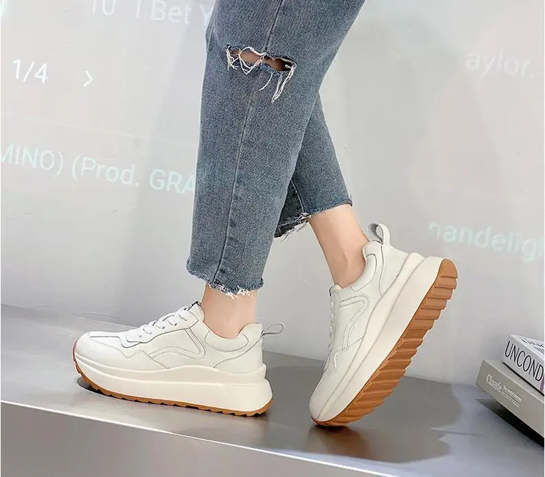 Women Shoes Wedges Sneakers Vulcanize Shoes Shake Shoes Fashion Girls Sport Shoes Genuine Leather Sneakers Shoes Footwear