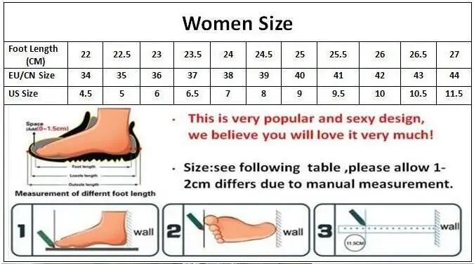 For example, if your foot length (Heel to Toe) is 26 cm,please choose size 8.5=42 in this model.Attention:1. There might be slightly difference in color, because of the computer monitor settings.2. With the difference in the measurement method, please allow 1-3cm in size deviation (1cm=0.39 inch).Thank you for understanding!!