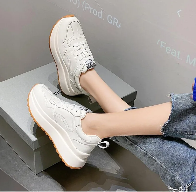 Women Shoes Wedges Sneakers Vulcanize Shoes Shake Shoes Fashion Girls Sport Shoes Genuine Leather Sneakers Shoes Footwear