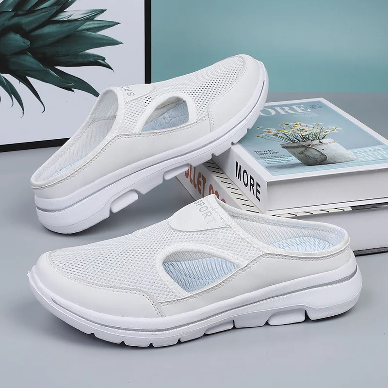 Women Slippers Breathable Mesh Casual Flat Shoes Outdoor Home Lightweigh Solid Slip On Couple Shoes Walking Sport Sandals2023