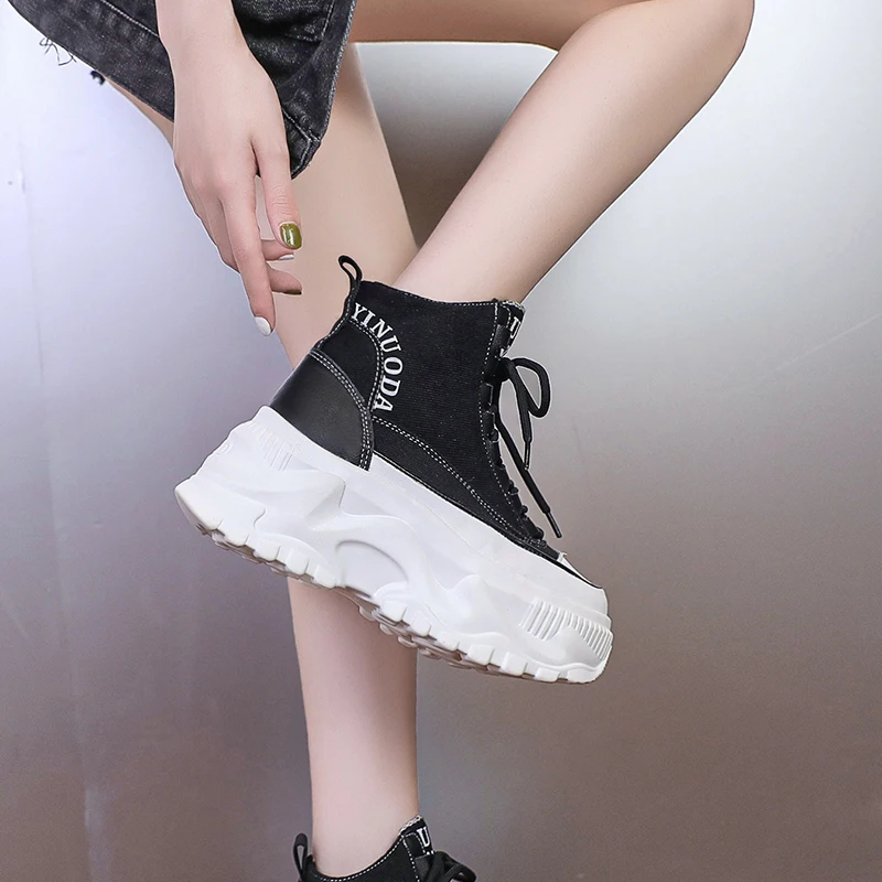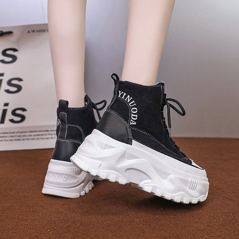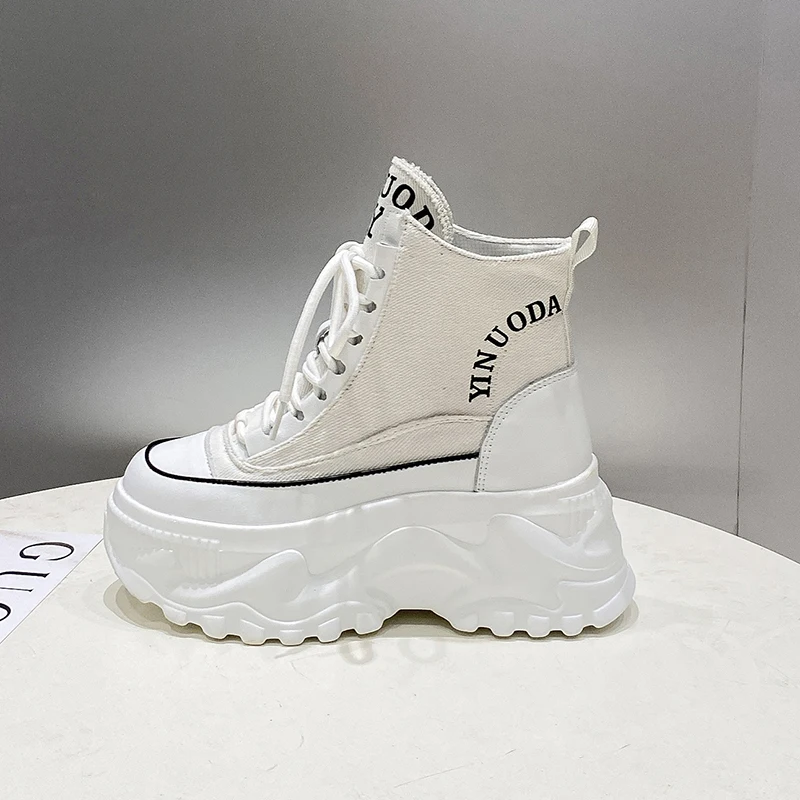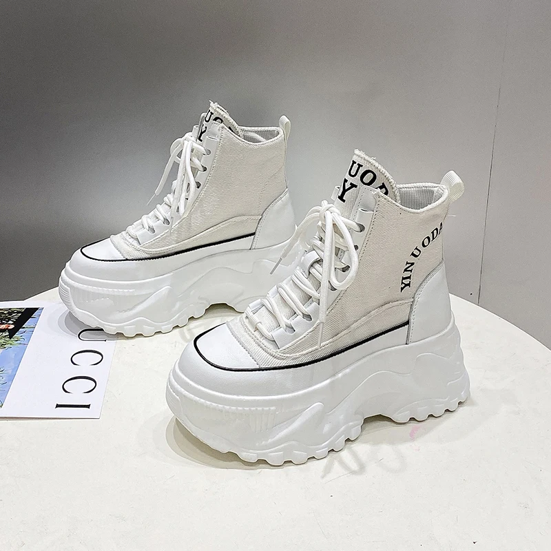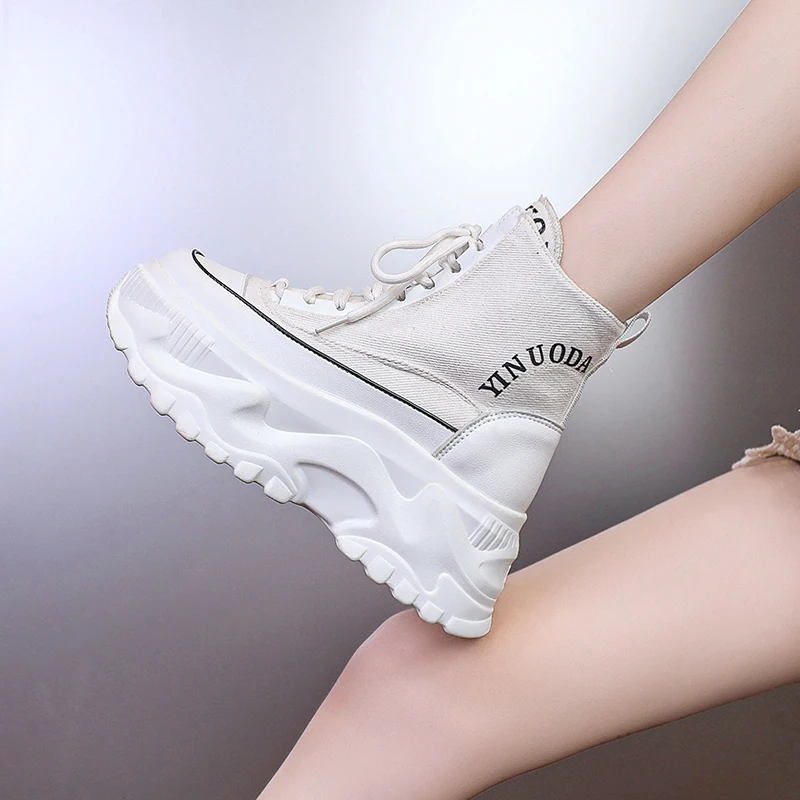 Women Sneakers High Top Platform Breathable Leather Shoes 2023 Autumn Ladies Wedges Casual Shoes For Woman Sports Dad Shoes 8CM