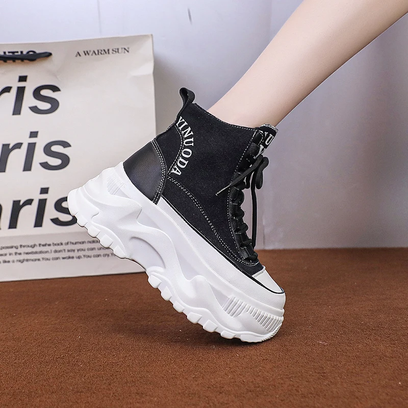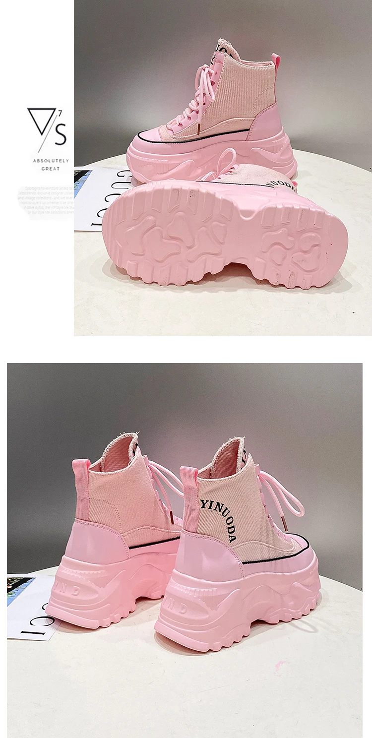 Women Sneakers High Top Platform Breathable Leather Shoes 2023 Autumn Ladies Wedges Casual Shoes For Woman Sports Dad Shoes 8CM