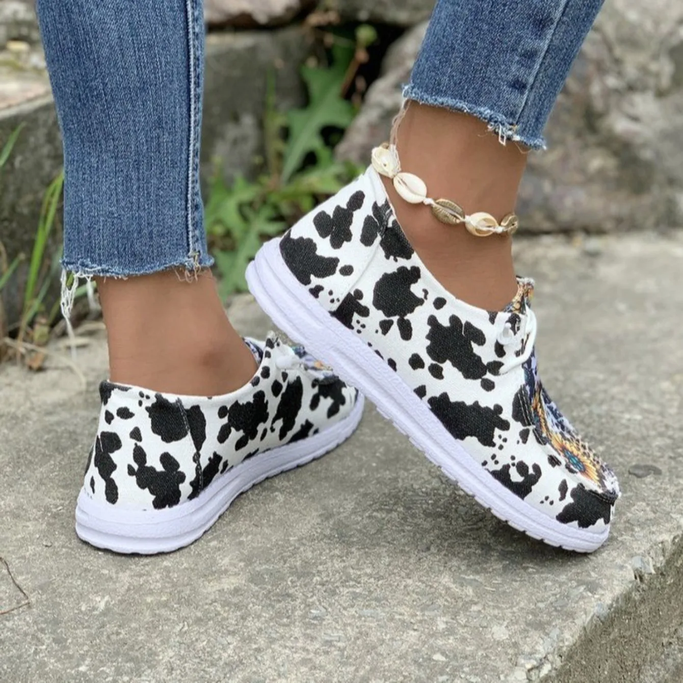 Women Sneakers Print Canvas Lightweight Slip-on Sneakers Ladies Breathable Sunflower Loafers Brand Design Casual Shoes for Women