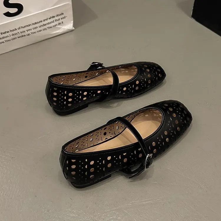 Women Square Toe Shoes Summer Elegant Solid Colour Buckle Hollow Casual Non-slip Lightweight Slip on Loafers Sapato Feminino