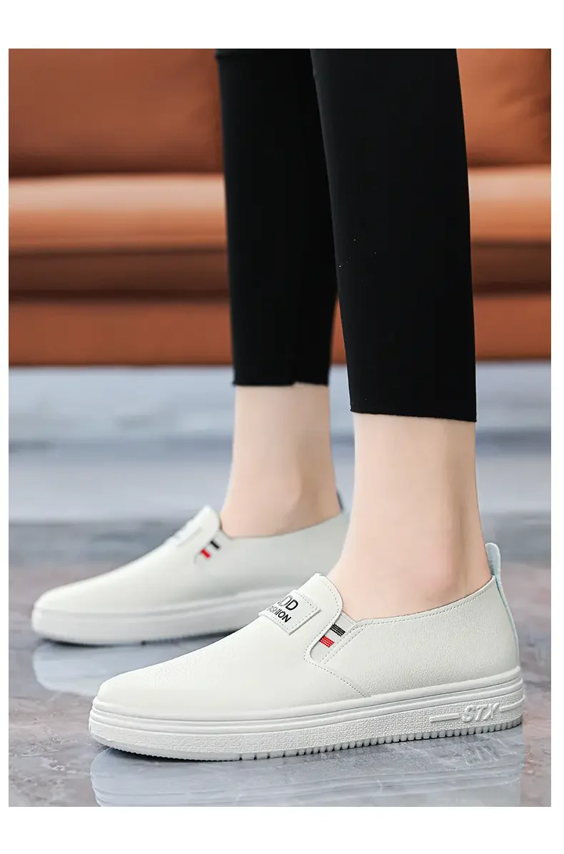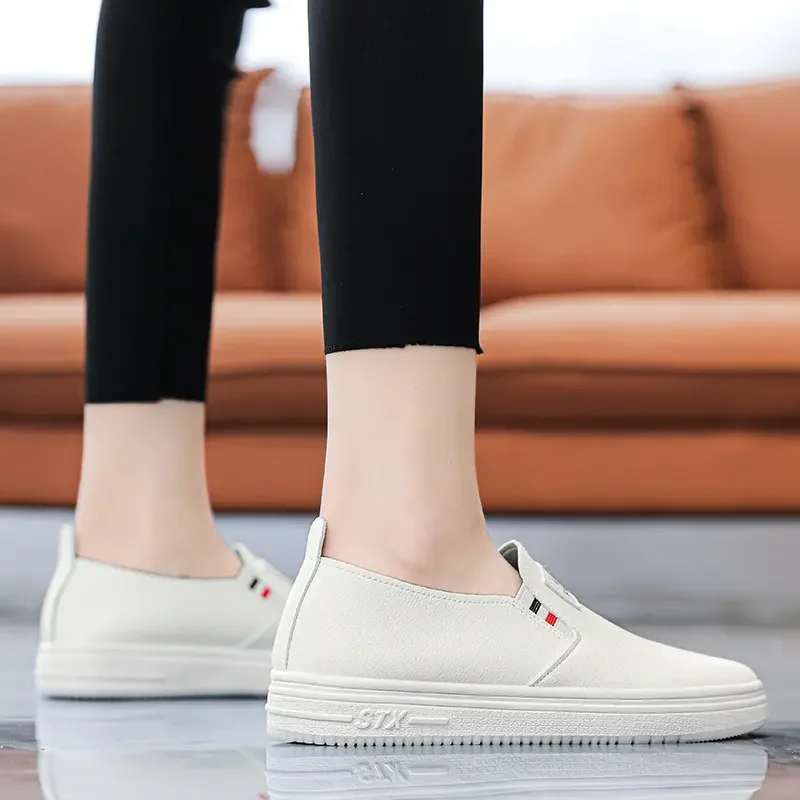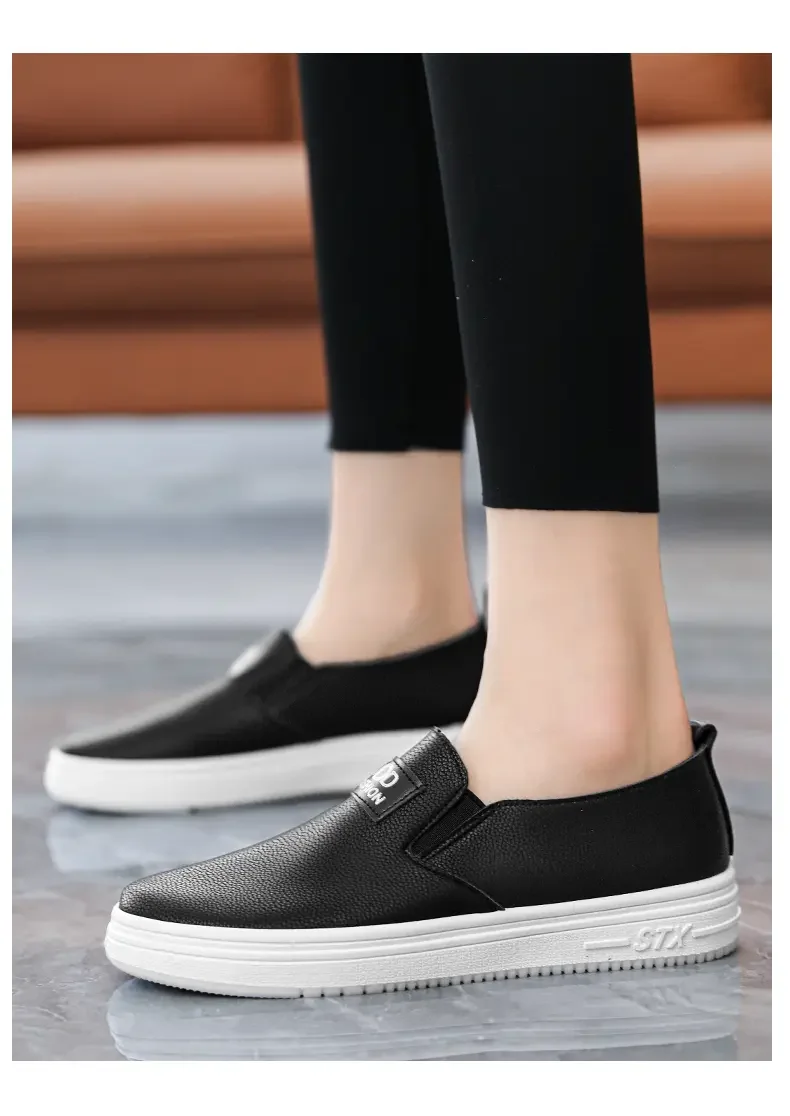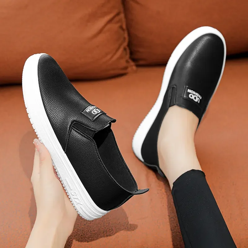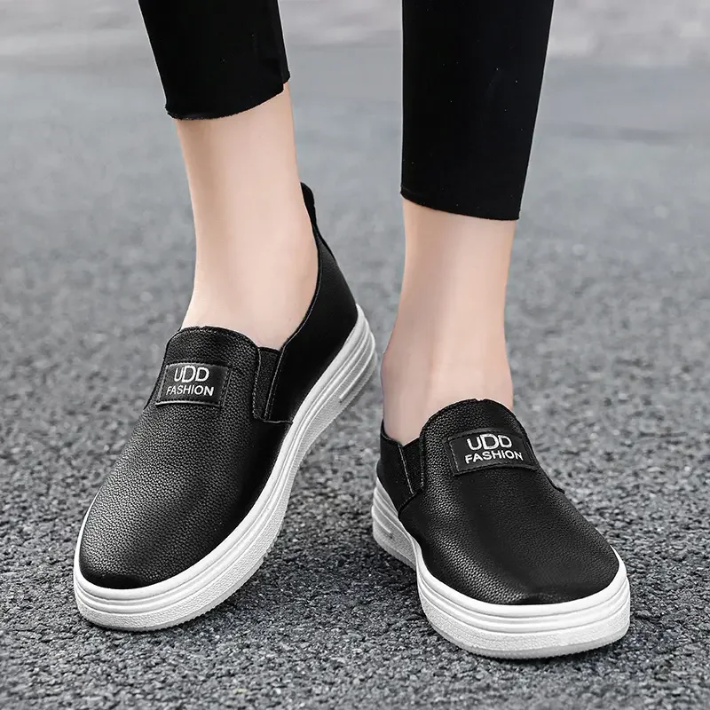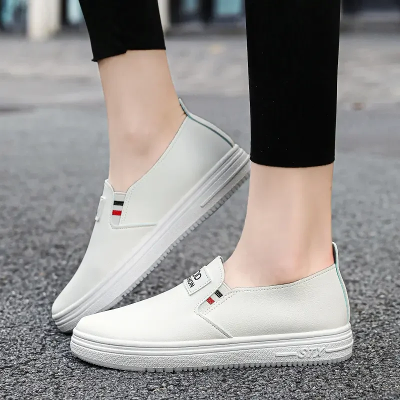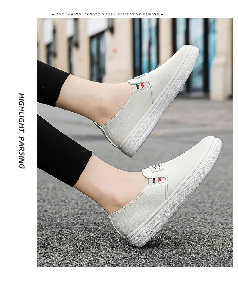 Women Vulcanize Shoes Fashion Spring Casual Female Shoes Classic Solid Color PU Leather Ladies White Sneakers Tenis Feminine