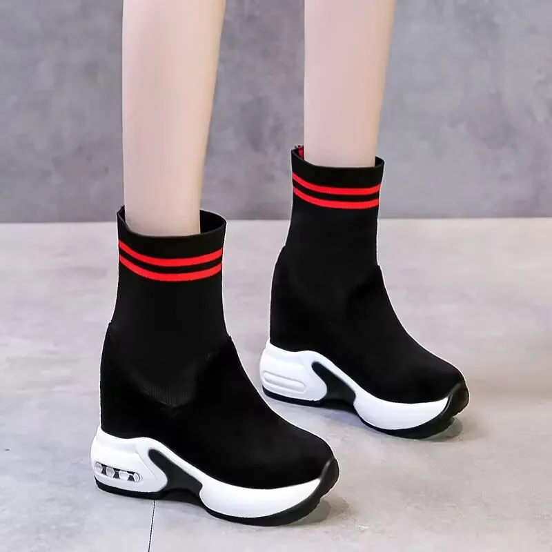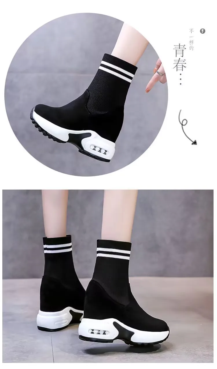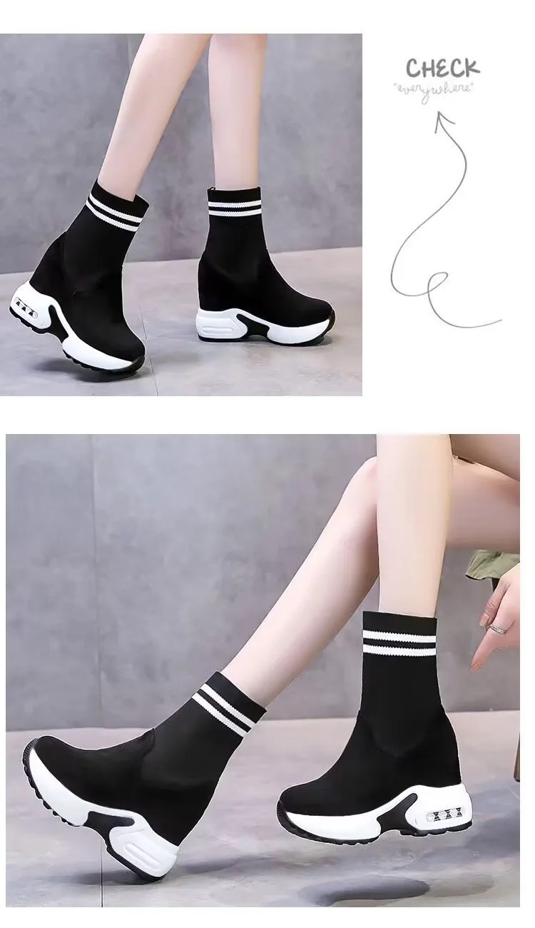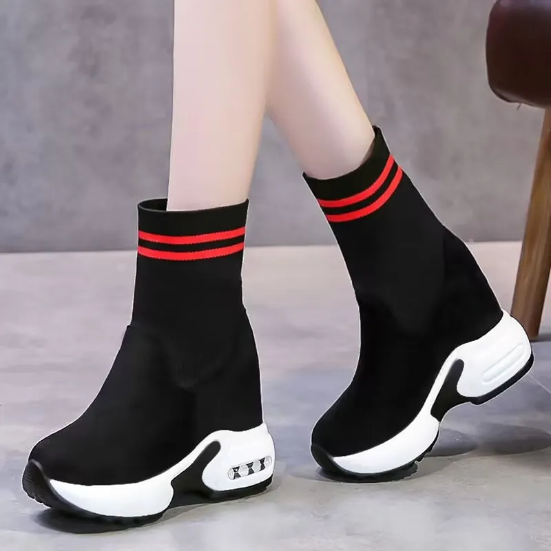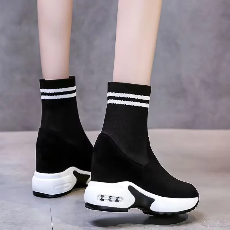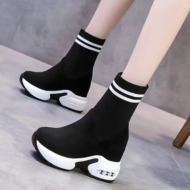 Women Vulcanized Sneakers Platform Solid Color Flat Ladies Shoes Casual Breathable Wedges Ladies Walking Zapatillas De Deporte