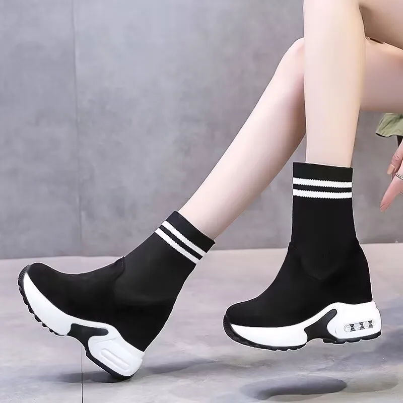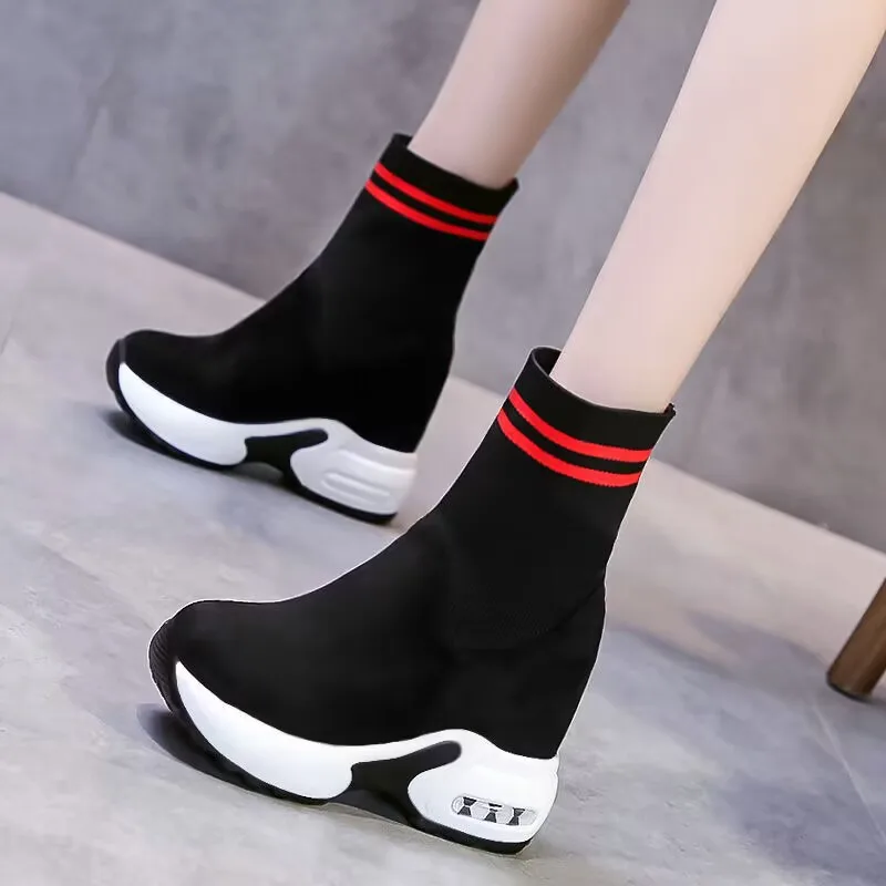 Women Vulcanized Sneakers Platform Solid Color Flat Ladies Shoes Casual Breathable Wedges Ladies Walking Zapatillas De Deporte