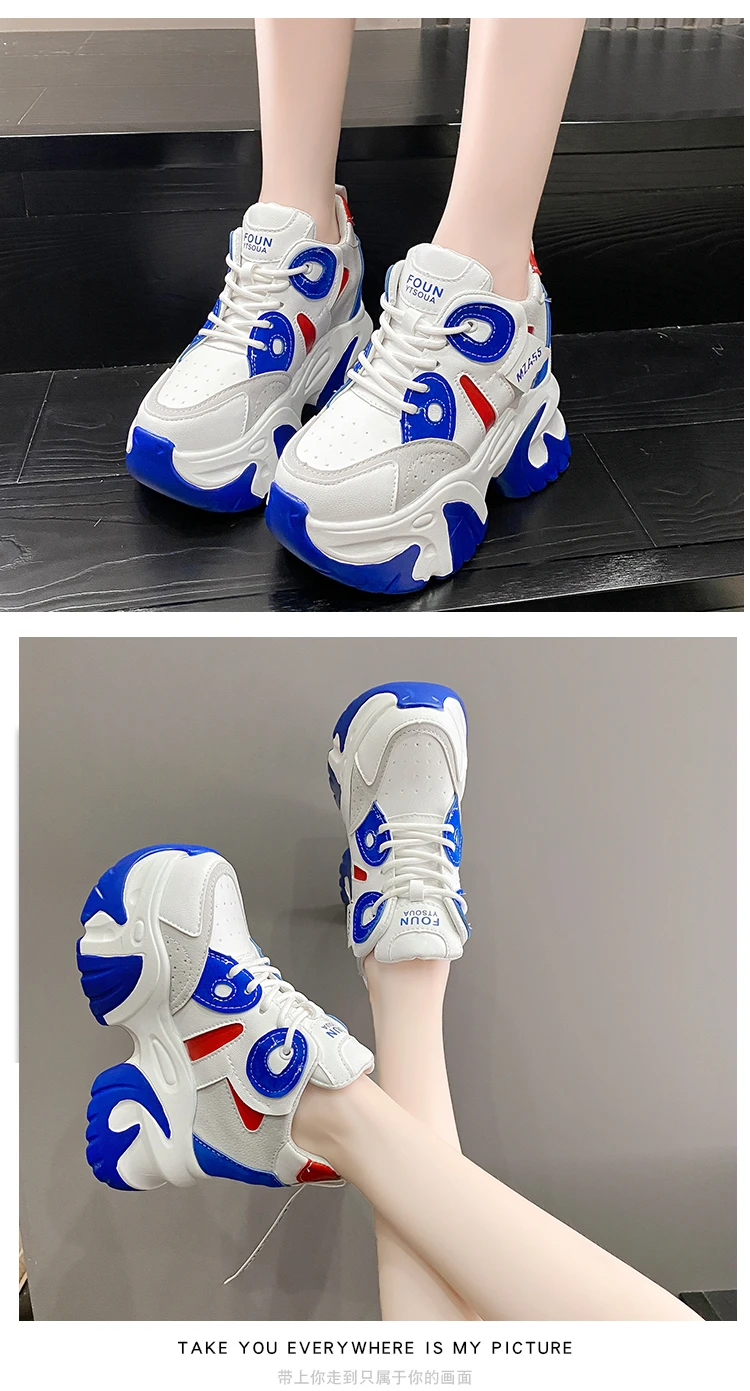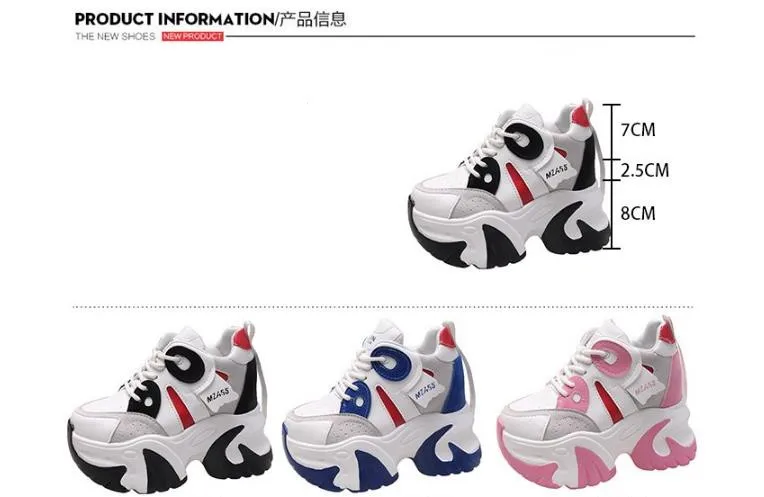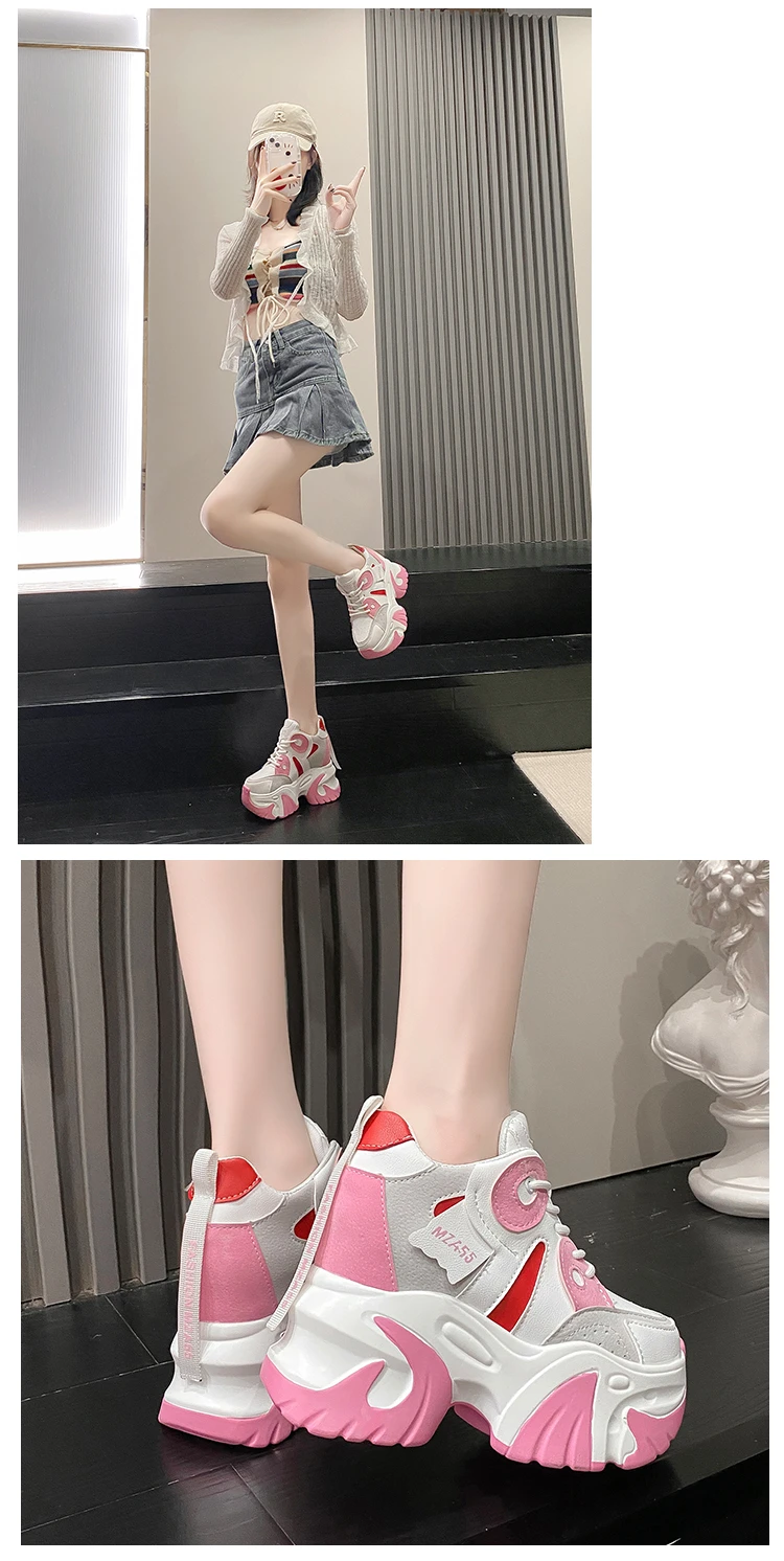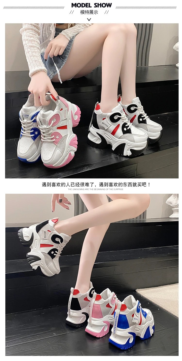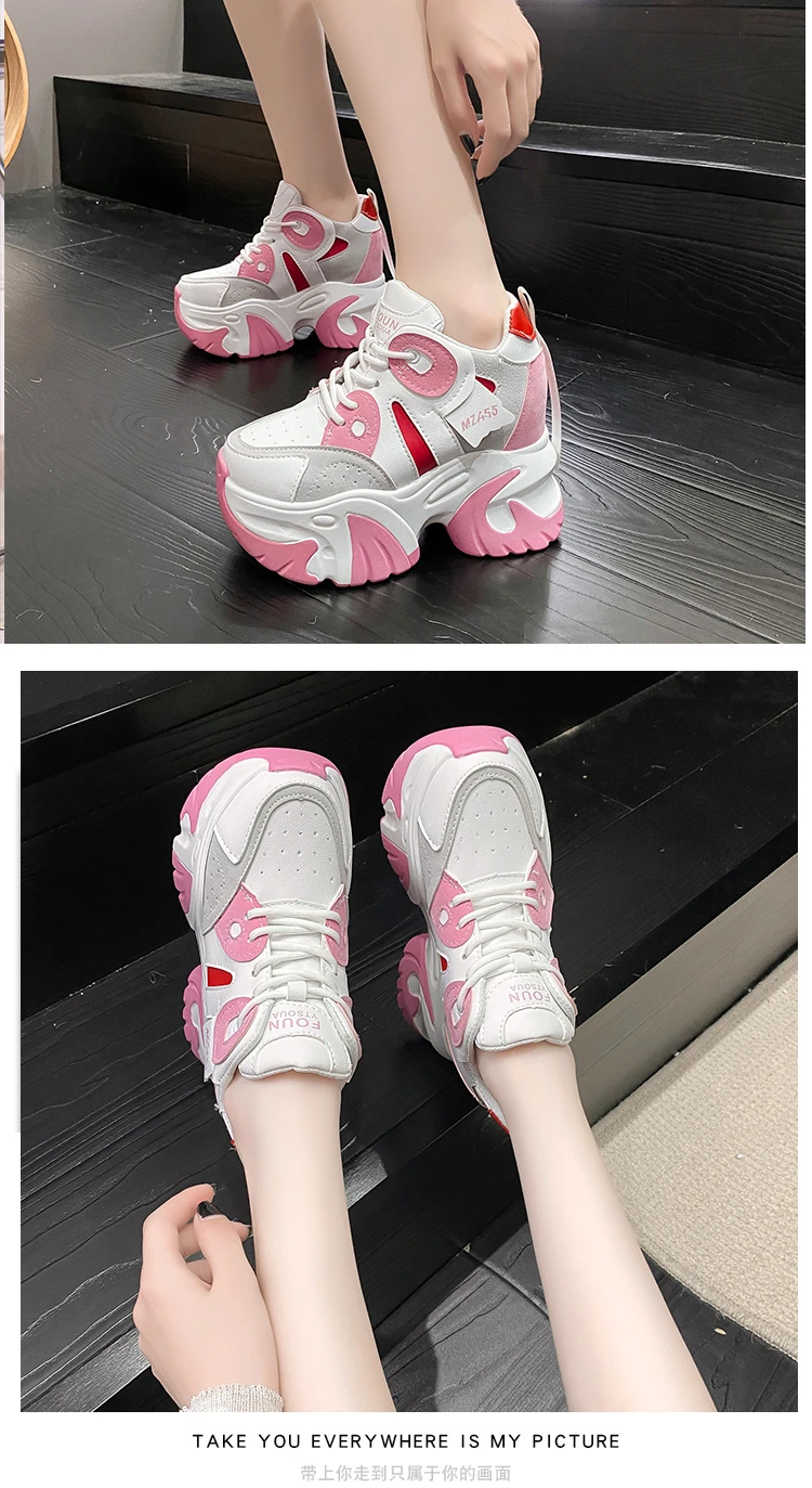 Women Walking Sneakers New Autumn Lace-up High Platform Chunky Shoes Breathable Leather Shoes 10.5CM Wedge Heels Casual Shoes