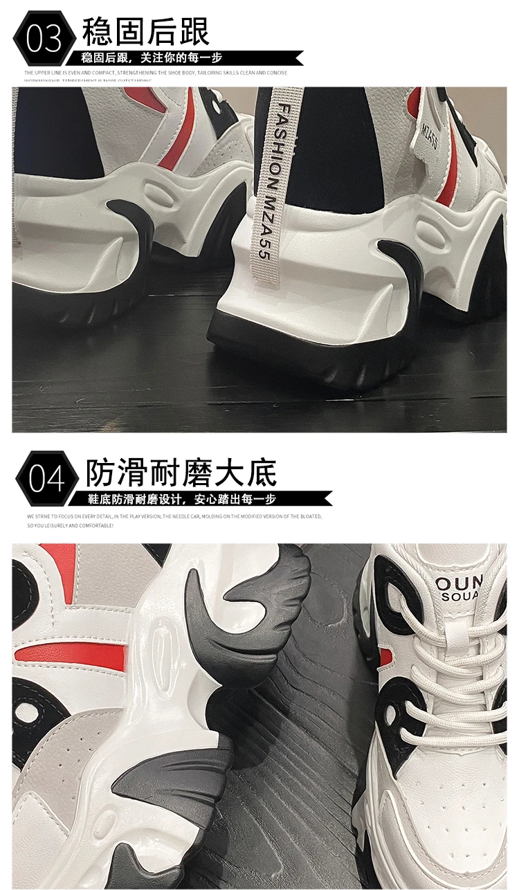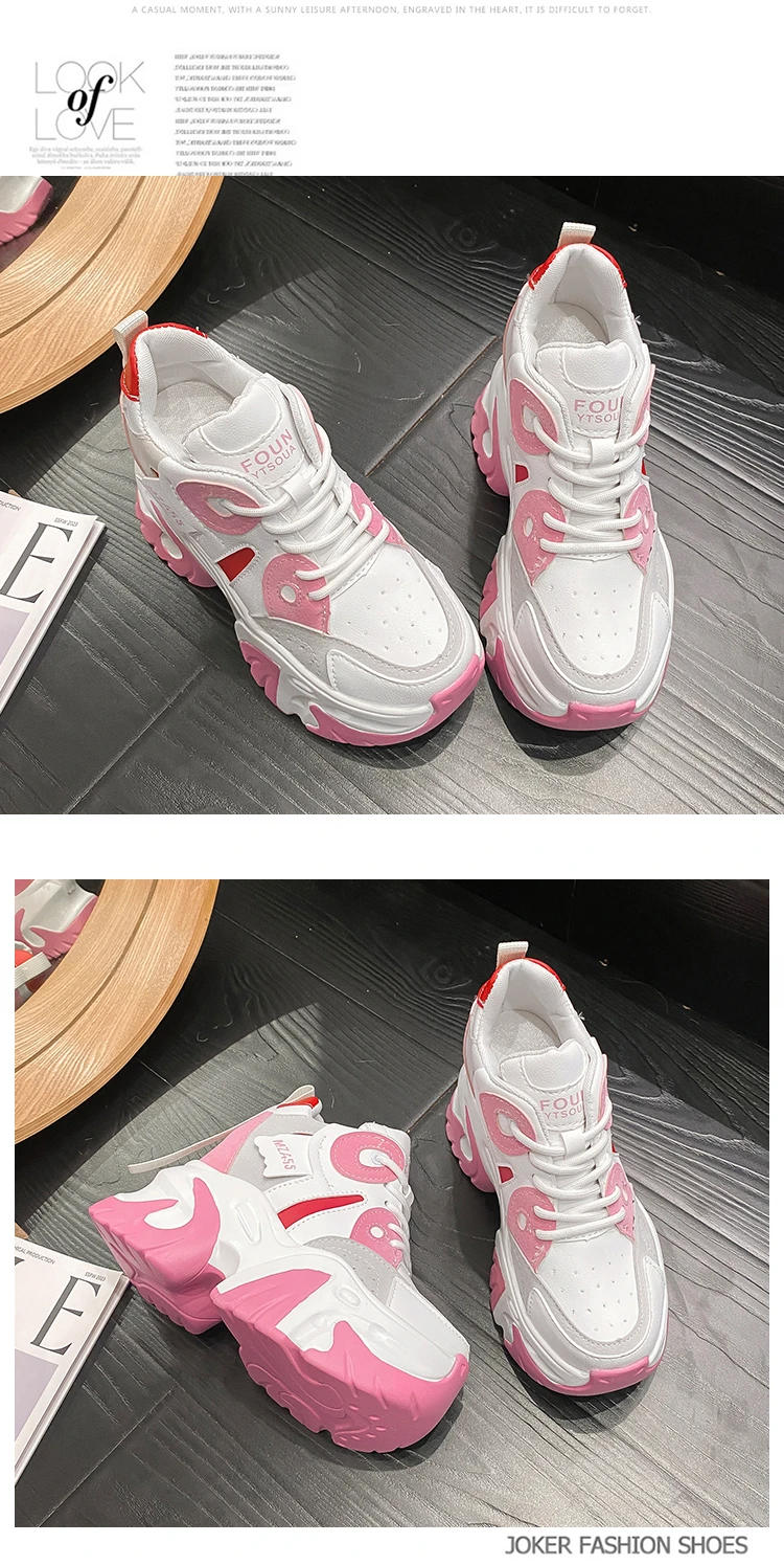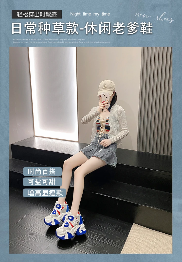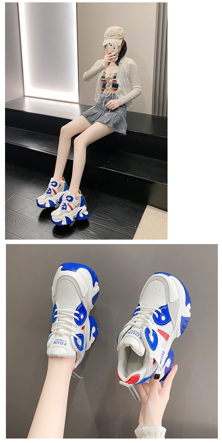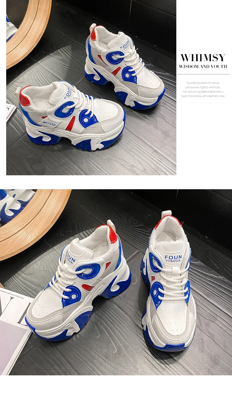 Women Walking Sneakers New Autumn Lace-up High Platform Chunky Shoes Breathable Leather Shoes 10.5CM Wedge Heels Casual Shoes
